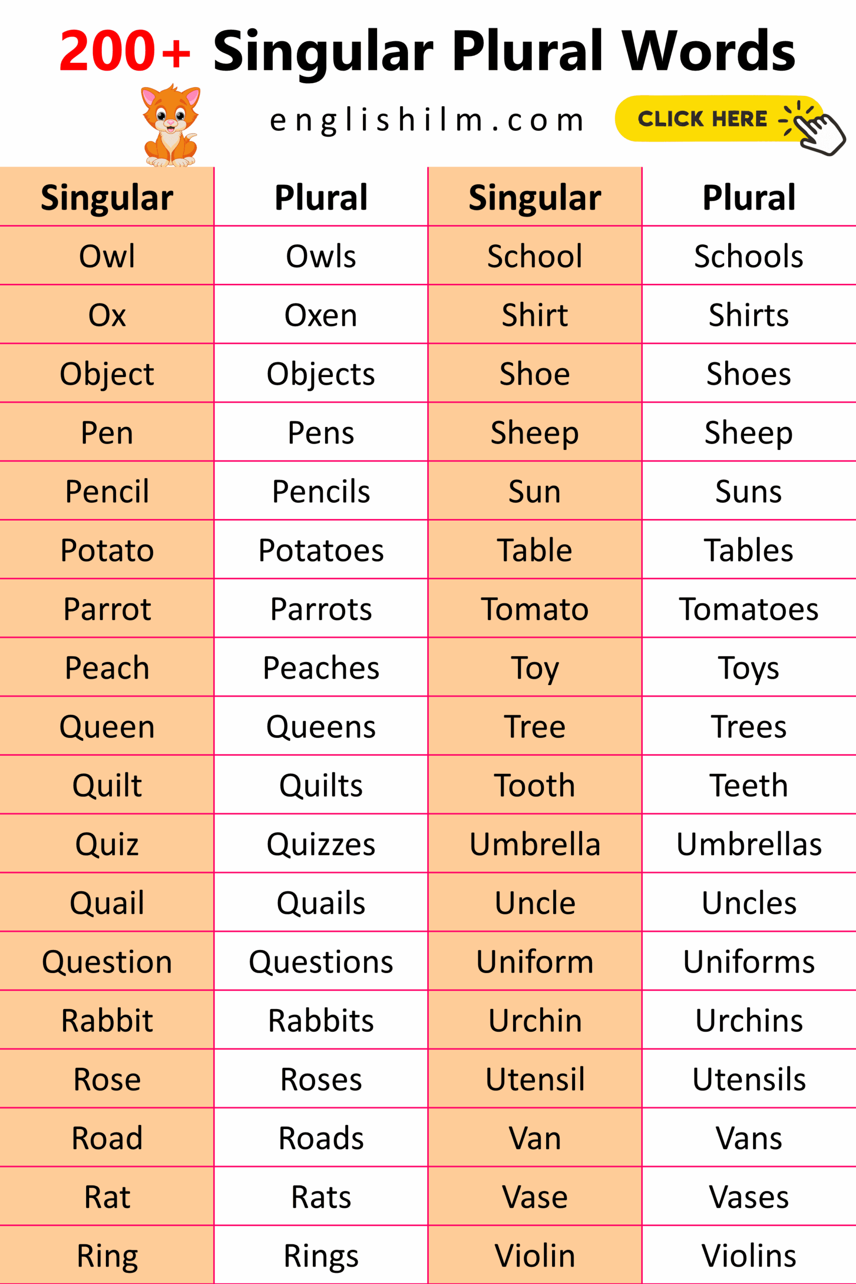Remember, practice makes perfect, so don’t be afraid to use these words in sentences to reinforce your understanding of singular and plural forms. Whether you’re a native English speaker or learning the language as a second language, mastering singular and plural words is an essential part of becoming fluent in English.
