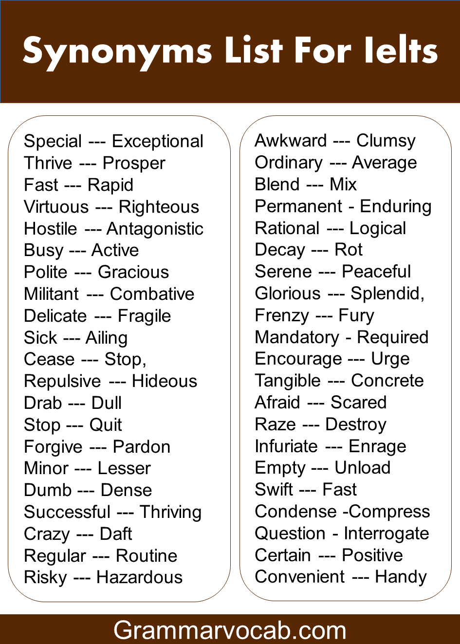 200 Synonyms Words List For Ielts Ielts Vocabulary GrammarVocab