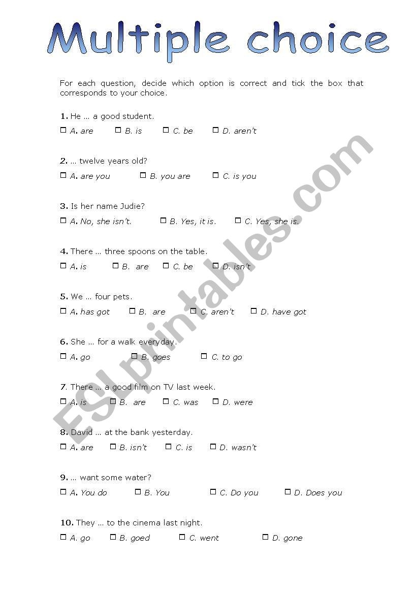 Multiple Choice Test 20 Questions ESL Worksheet By Xana f