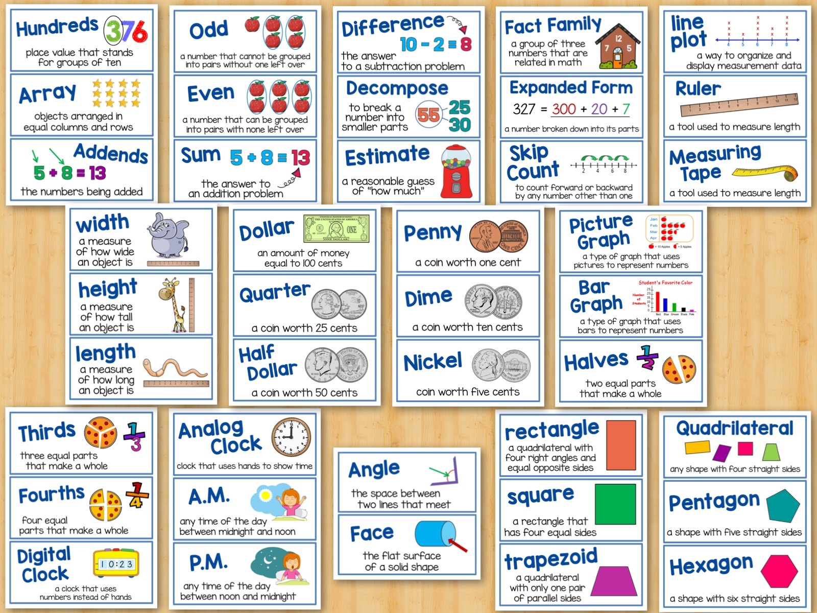 2nd Grade Math Word Wall Vocabulary Cards Made By Teachers
