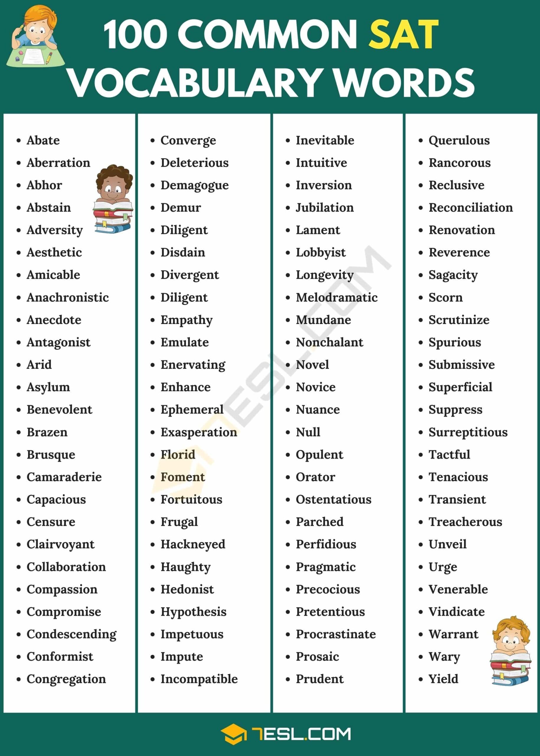 100 Most Common SAT Words Useful SAT Vocabulary 7ESL