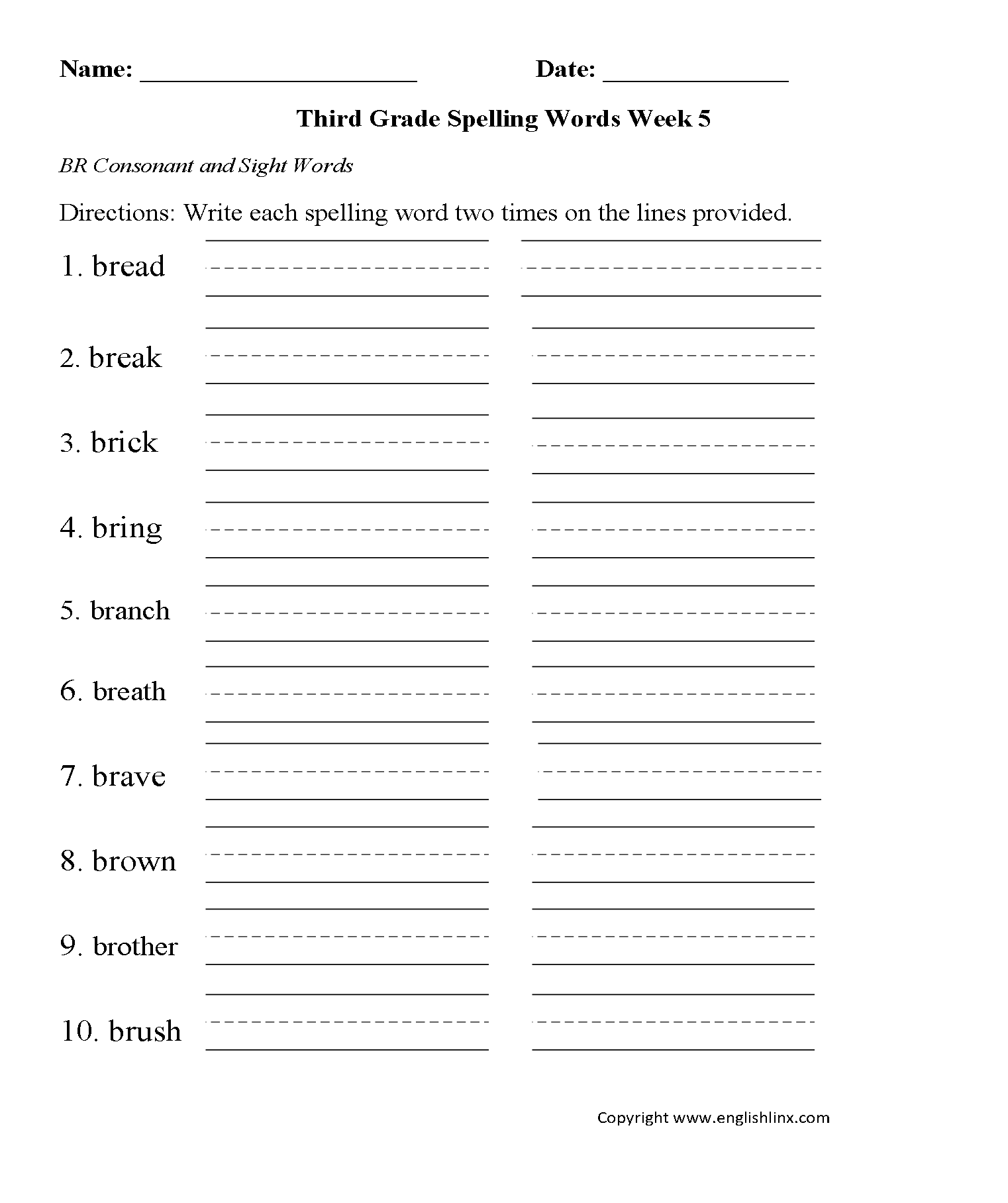Here are some examples of 3rd grade spelling words that you can easily print out for your child or students: