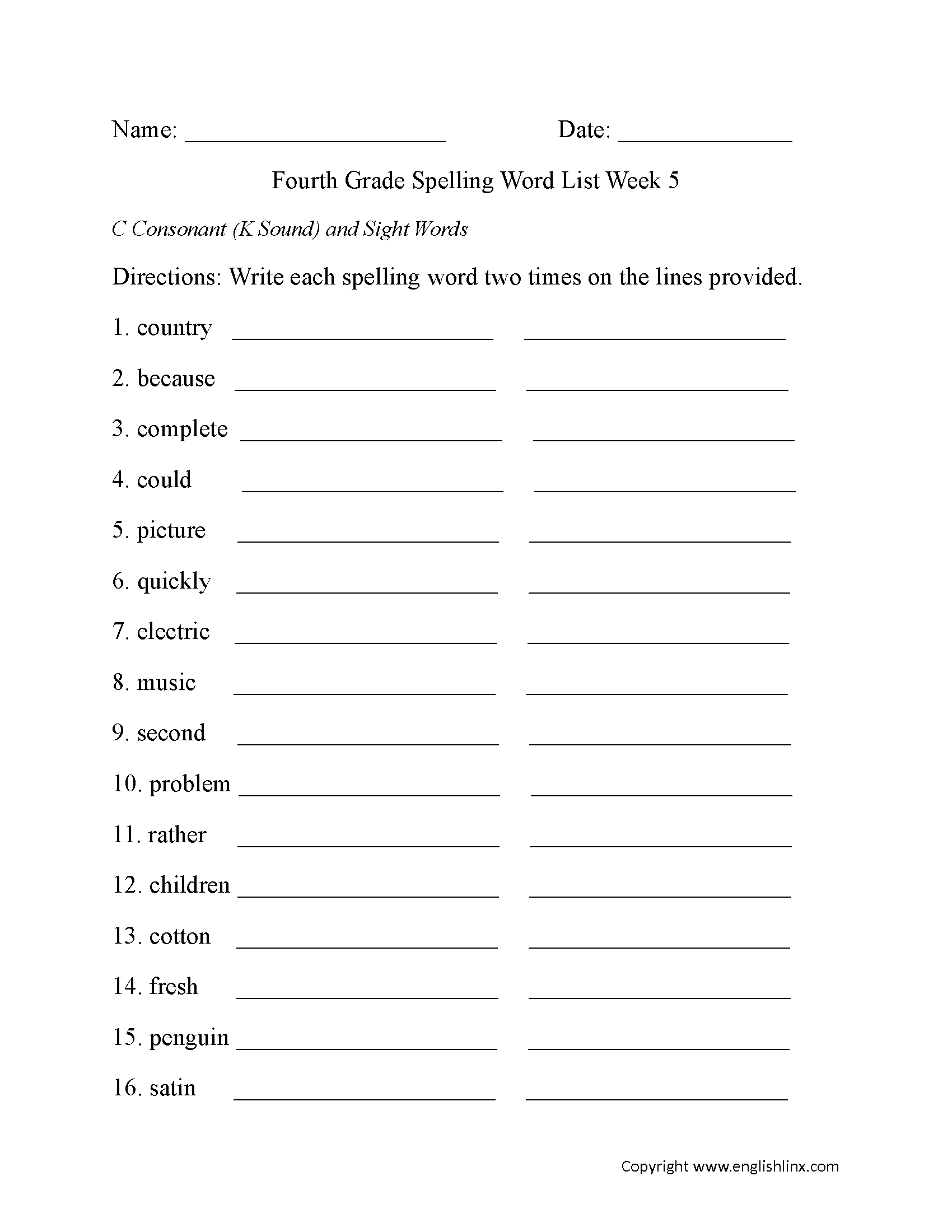 Spelling Worksheets Fourth Grade Spelling Words Worksheets