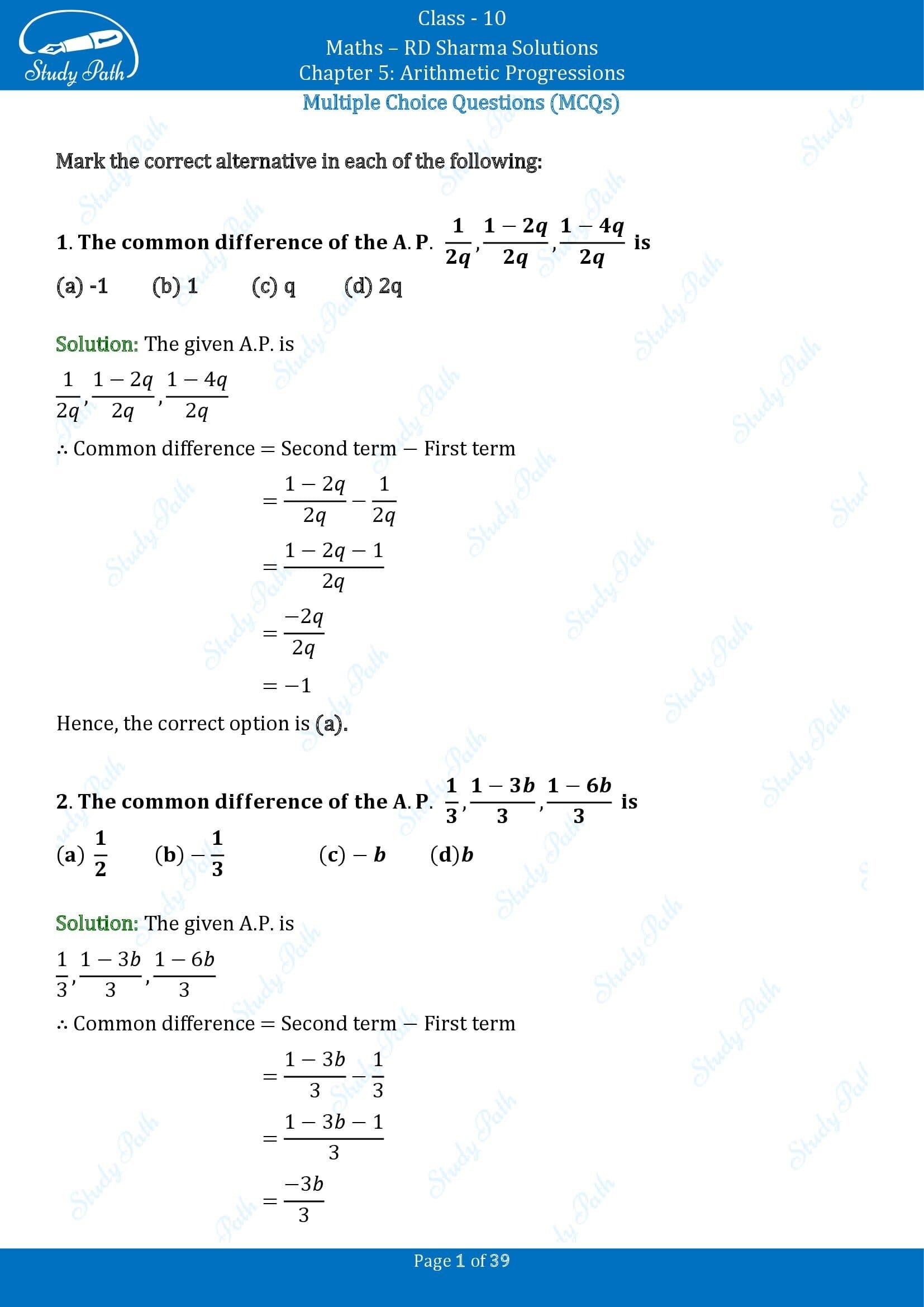 Download and Print 5 multiple choice questions Listed below