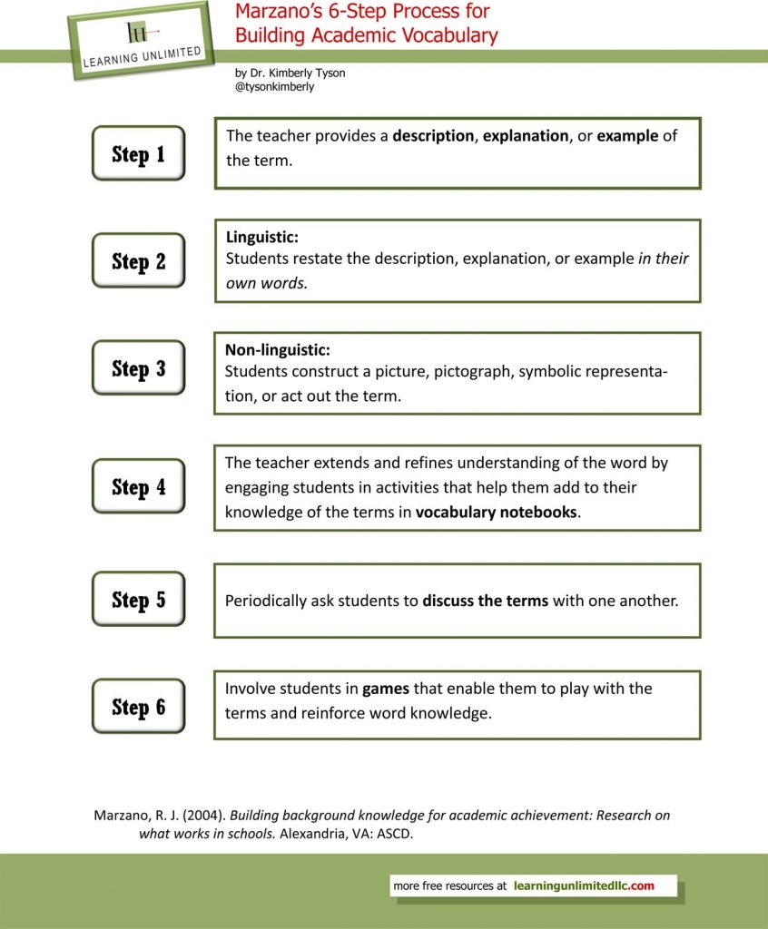 Building Academic Vocabulary Marzano s 6 Step Process