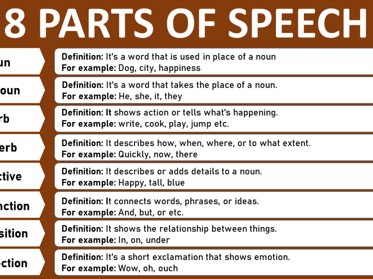 Each part of speech serves a specific purpose in a sentence, helping to convey meaning and structure. Let’s explore each part of speech in more detail: