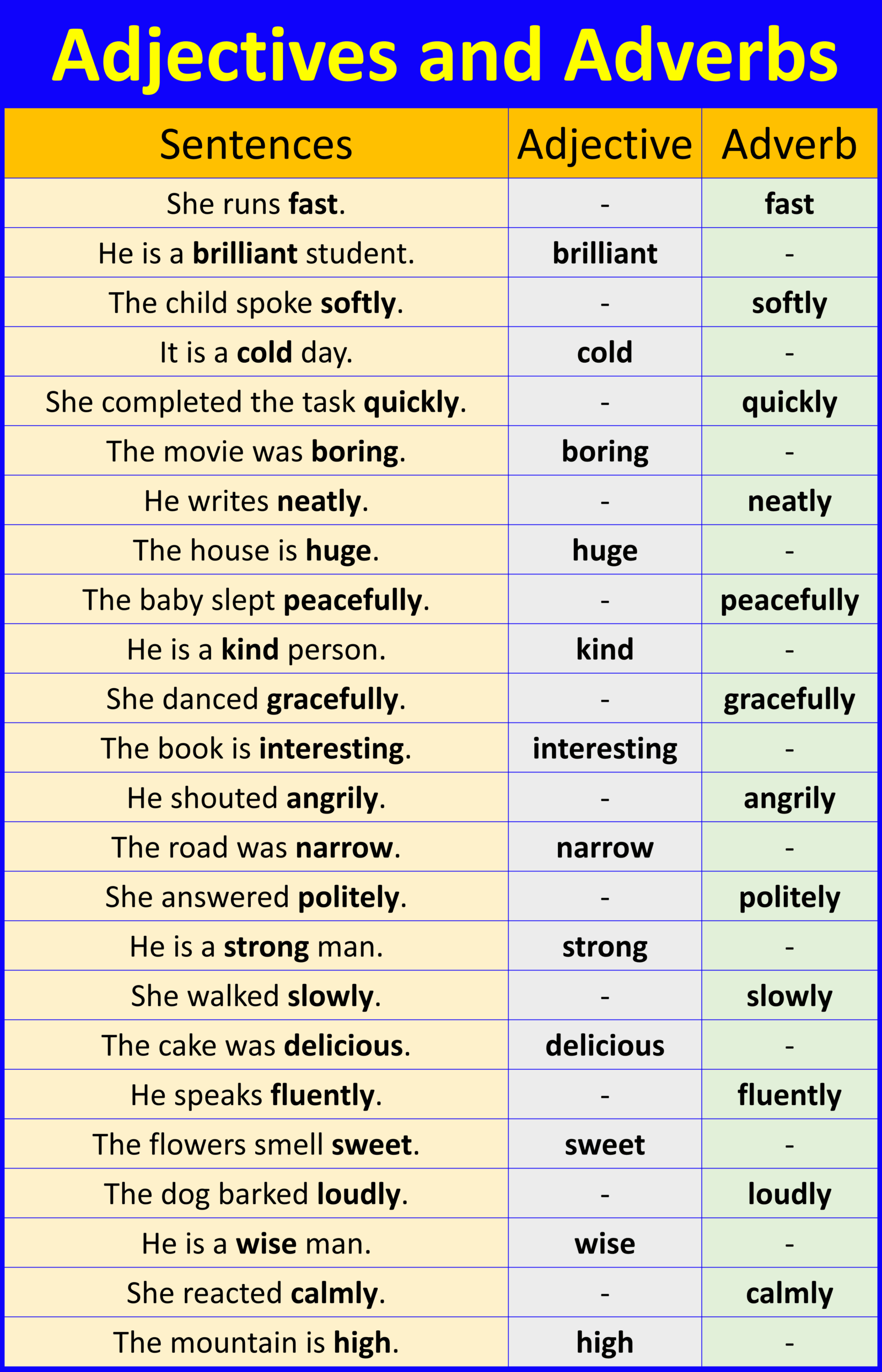 In conclusion, adverbs and adjectives are powerful tools that can elevate our writing and make it more impactful. By understanding the role of adverbs and adjectives and using them effectively, we can create vivid and descriptive sentences that captivate our audience. Practice using adverbs and adjectives in your writing to improve your communication skills and make your writing more engaging and compelling.