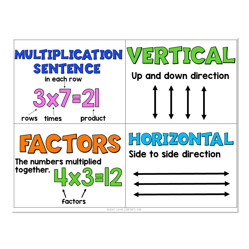 Math Vocabulary Cards Operations U0026 Algebraic Thinking Multiplication Sentence Vertical Factors Horizontal Lucky Little Learners