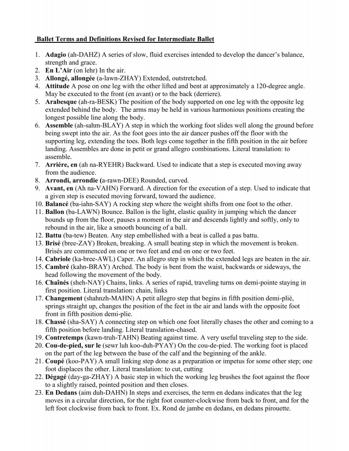 Ballet is a beautiful and elegant form of dance that requires precision, strength, and grace. To fully appreciate and understand ballet, it is important to be familiar with the various terms used in this art form. Below is a list of some common ballet terms along with pictures to help you visualize and understand each term better.