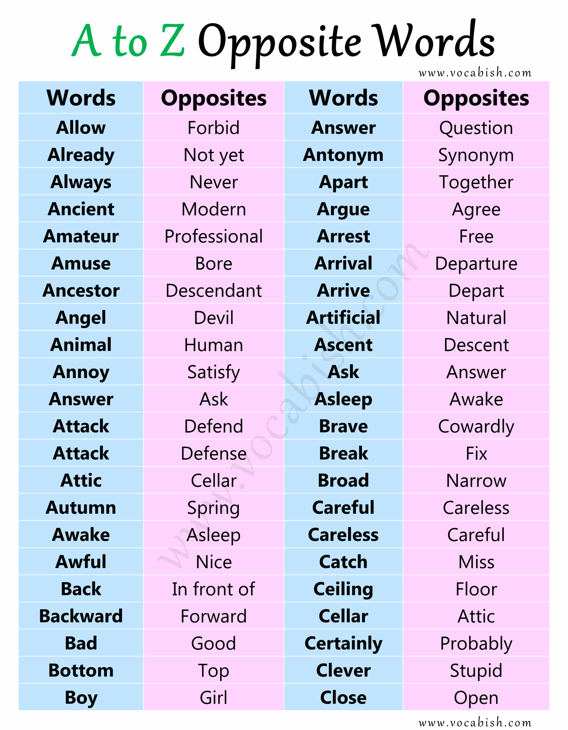 500 A To Z Opposite Words List In English With PDF Vocabish
