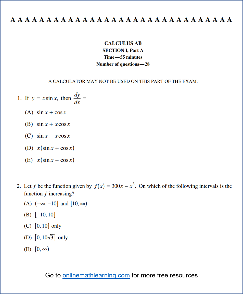 AP Calculus AB MCQ PDF