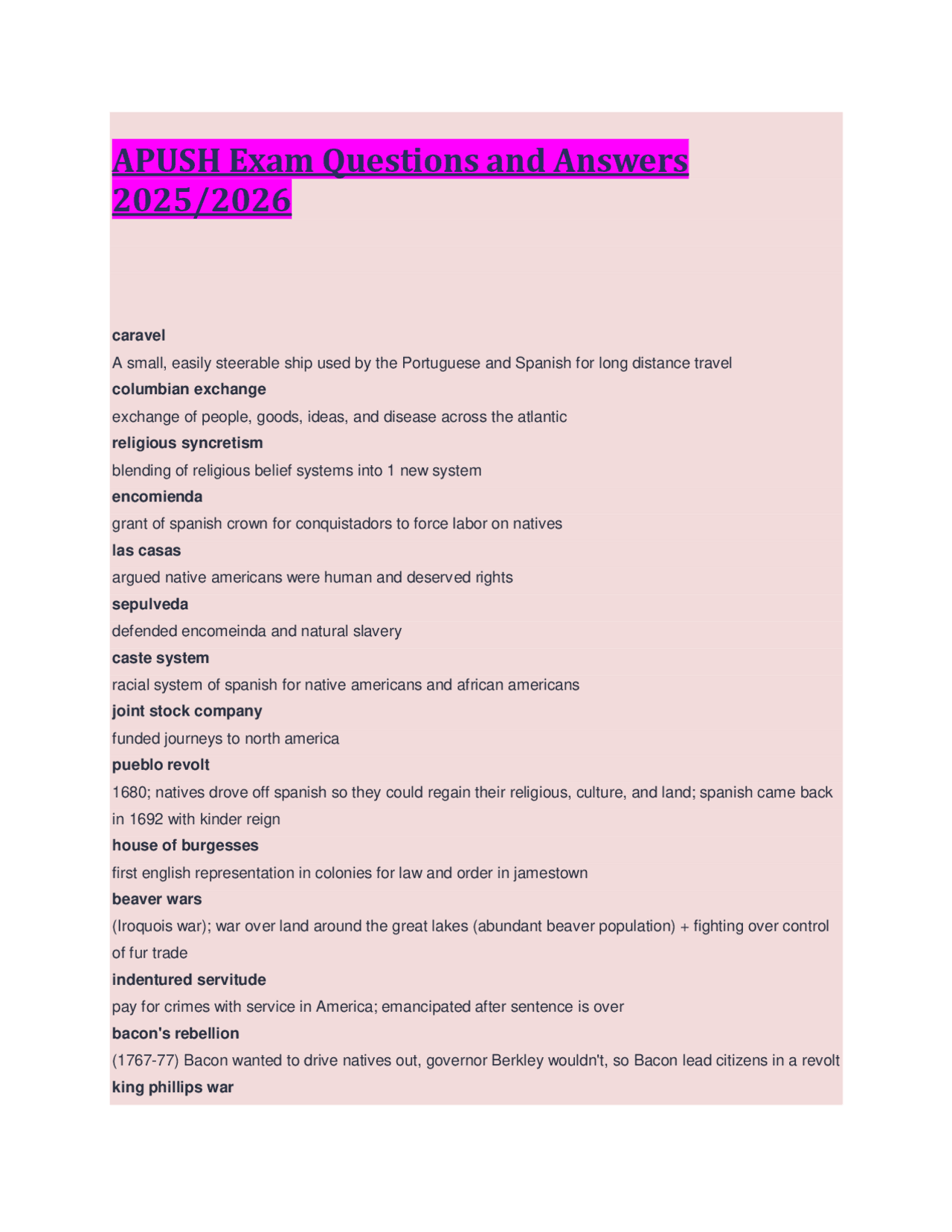 APUSH Questions and Answers