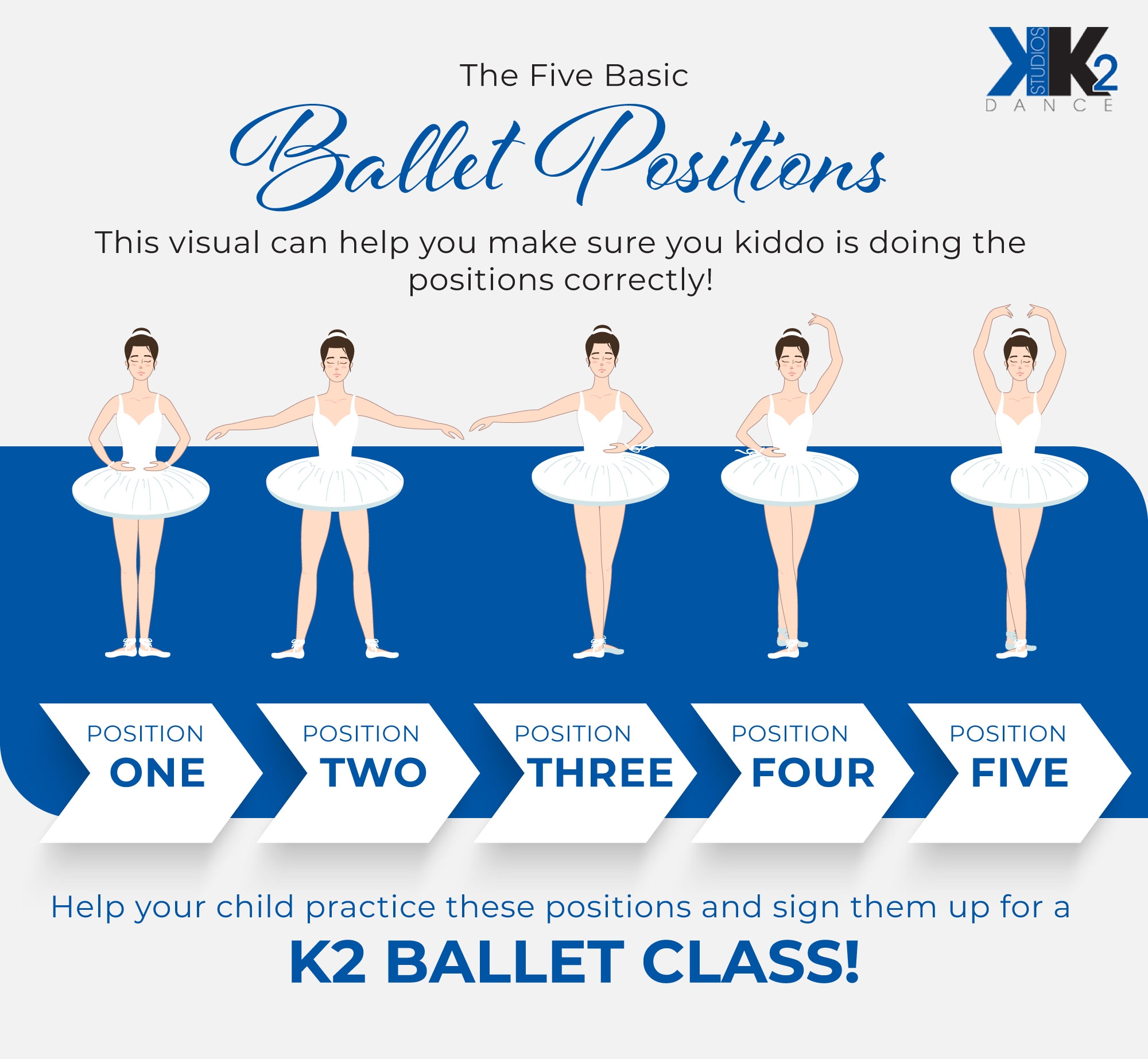 There are five basic ballet positions that form the foundation of ballet technique. These positions are used as the starting point for many ballet movements and combinations. Let’s take a closer look at each position: