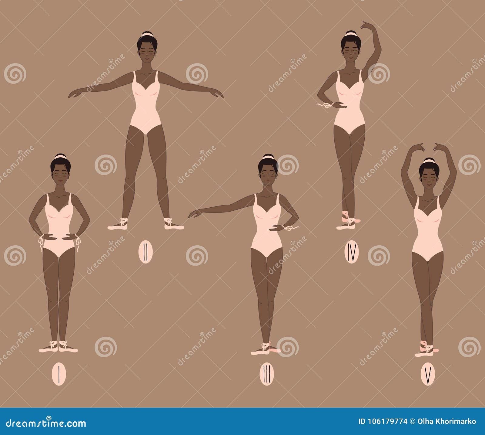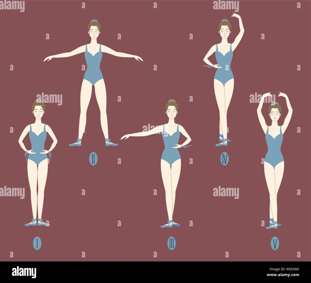 Young Dancer Shows The Five Basic Ballet And Dance Positions With Correct Placement Of Arms Legs And Feet Stock Illustration Illustration Of Class Character 106179774