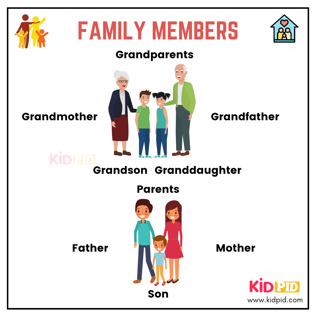 5. Family: Teaching children the names of family members like mom, dad, brother, and sister can help them understand the concept of family and relationships. Learning about family can also foster a sense of belonging and connection for young learners.