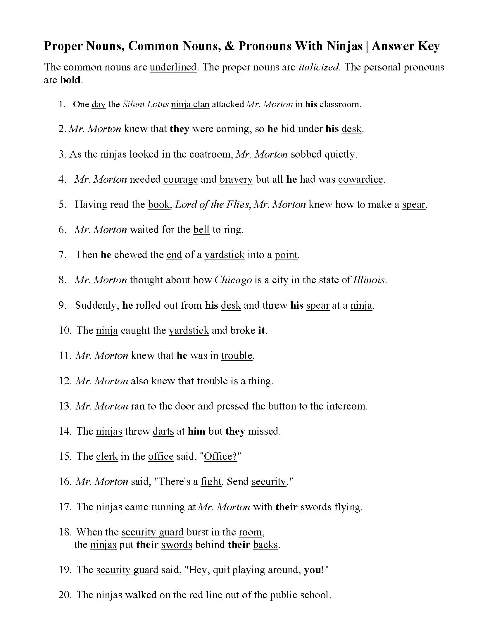 Common and Proper Nouns Worksheets with Answers PDF