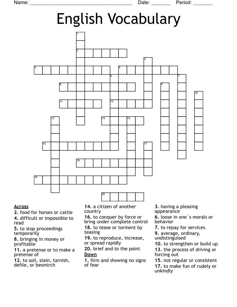 English vocabulary is an essential part of language learning, and one fun way to reinforce it is by solving crossword puzzles. Crossword puzzles not only help improve your vocabulary but also enhance your problem-solving skills. By filling in the blanks with the correct words, you can expand your knowledge and understanding of the English language.