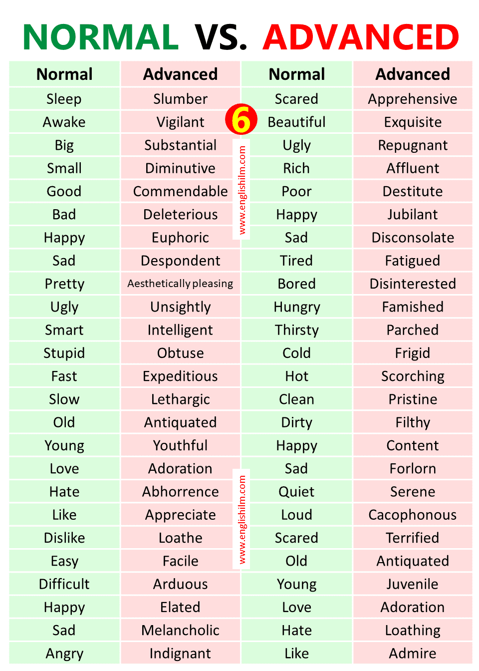 500 Normal Vs Advanced English Words Englishilm
