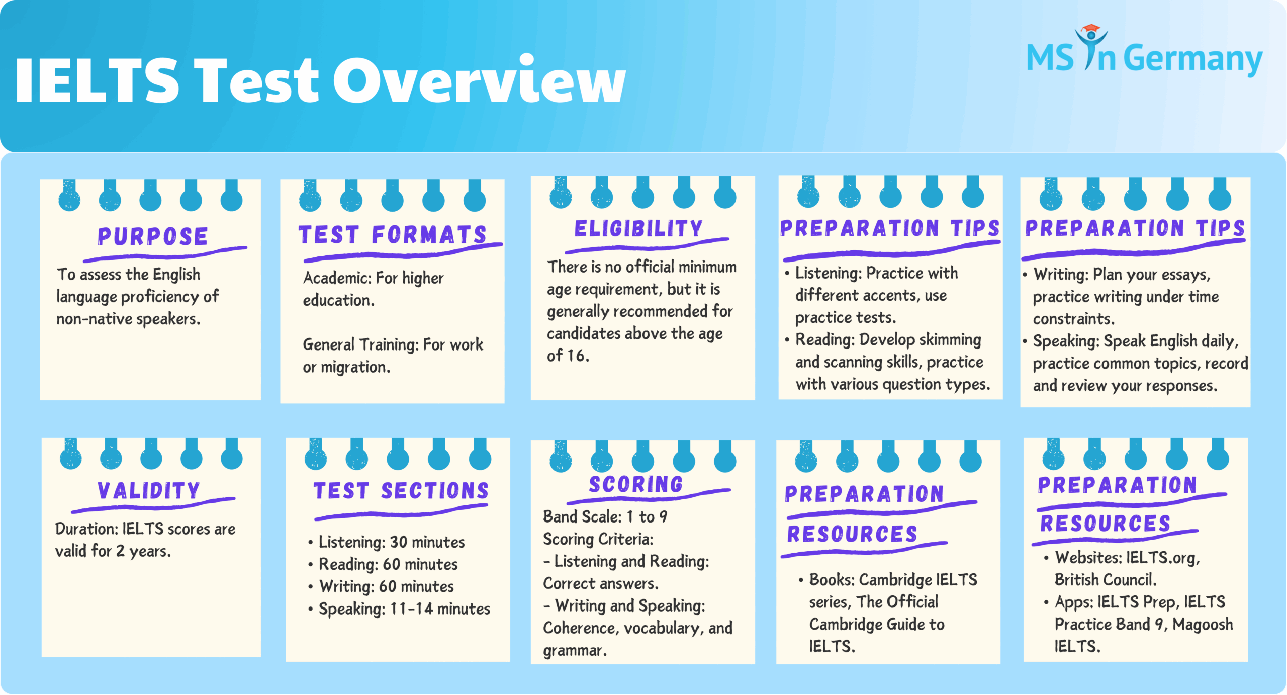Scoring for the IELTS exam is on a scale of 0 to 9, with each section scored individually and then averaged for an overall band score. Most universities and employers require a minimum band score for admission or employment, with higher scores typically indicating a higher level of English proficiency.
