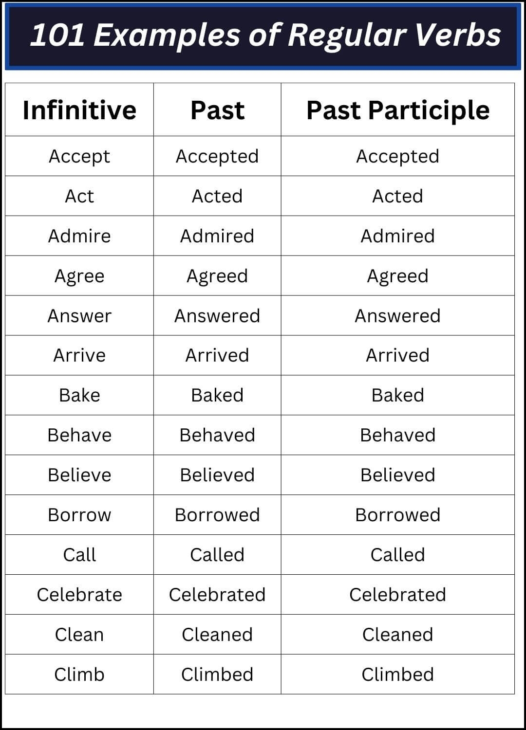 101 Examples Of Regular And Irregular Verbs