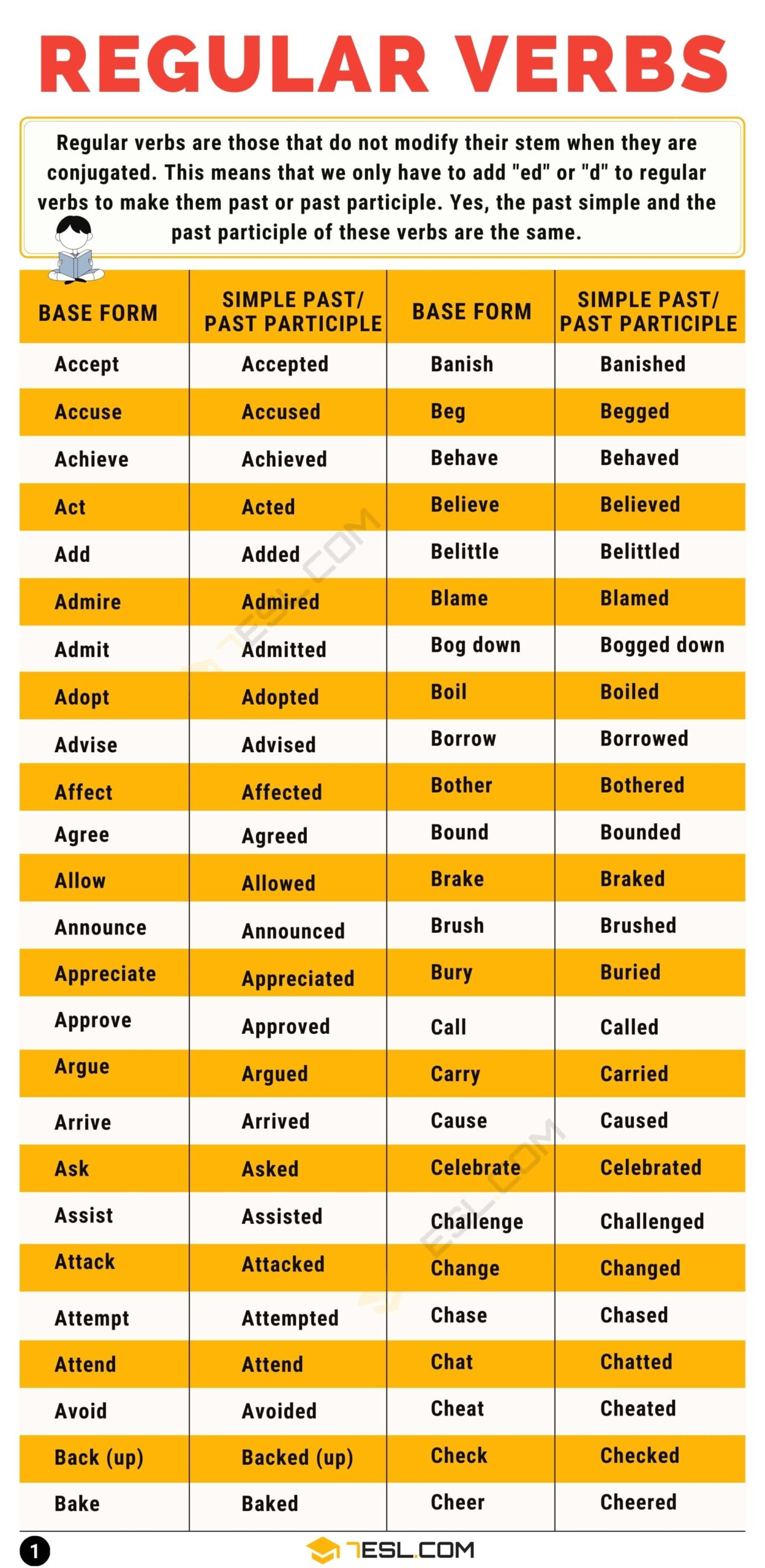 Regular Verbs List Of 300 Useful Regular Verbs In English 7ESL