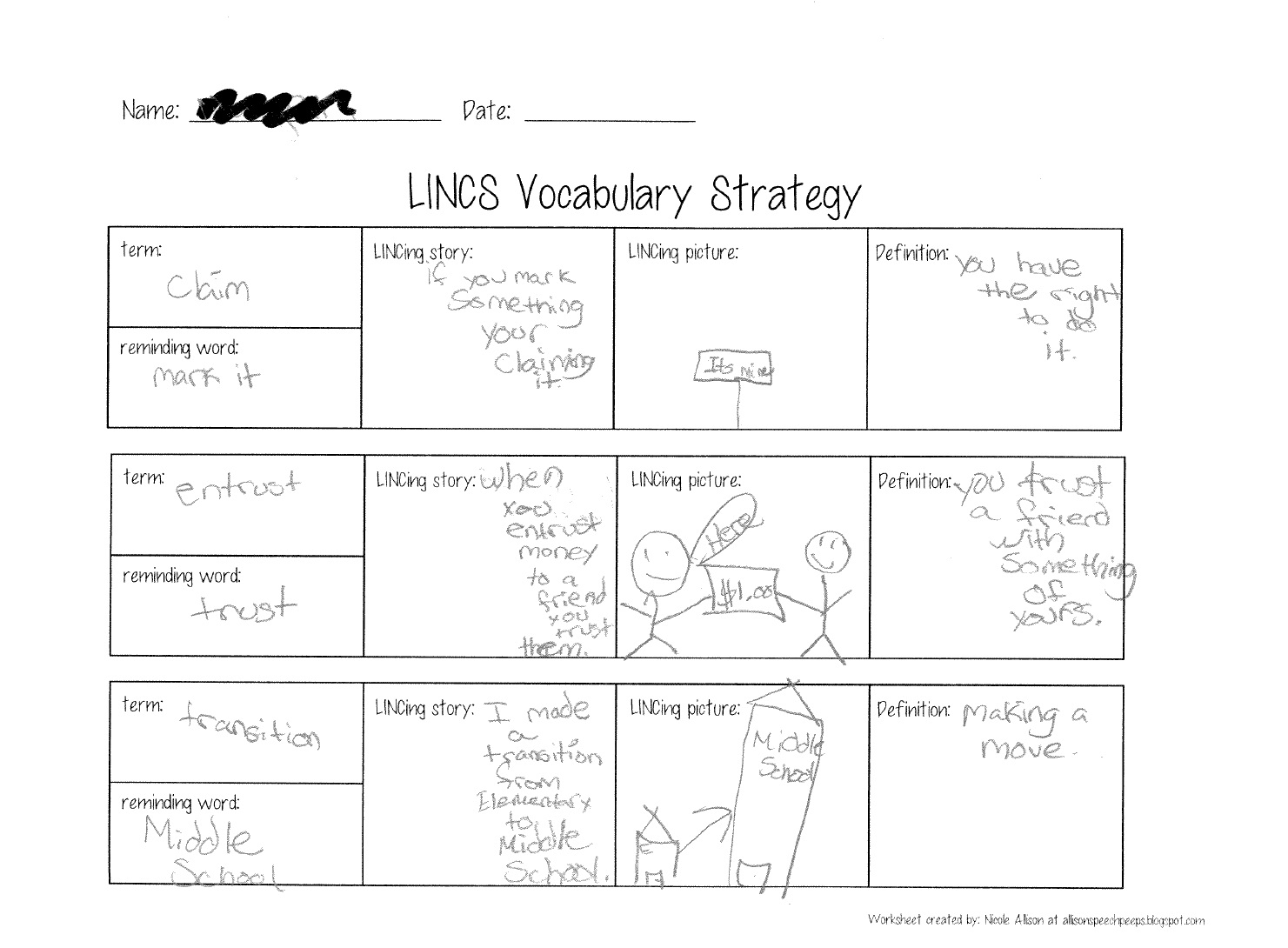 Download and Print examples of vocabulary instruction Listed below