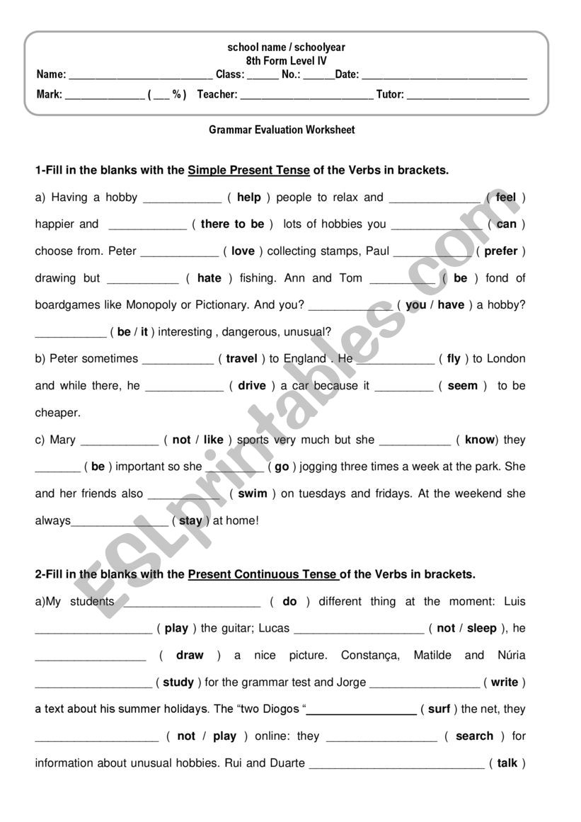 Grammar Test On Present Simple Present Continuous ESL Worksheet By Graceoli