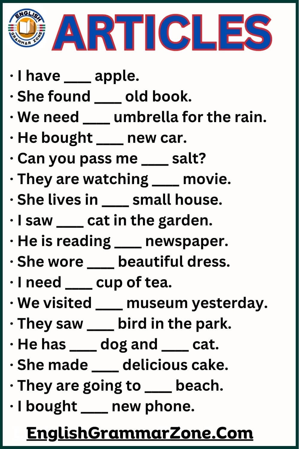 Fill in the blanks grammar exercises require the participant to select the correct word or phrase to complete a sentence. This not only tests knowledge of grammar rules but also challenges the individual to apply their understanding of sentence structure.