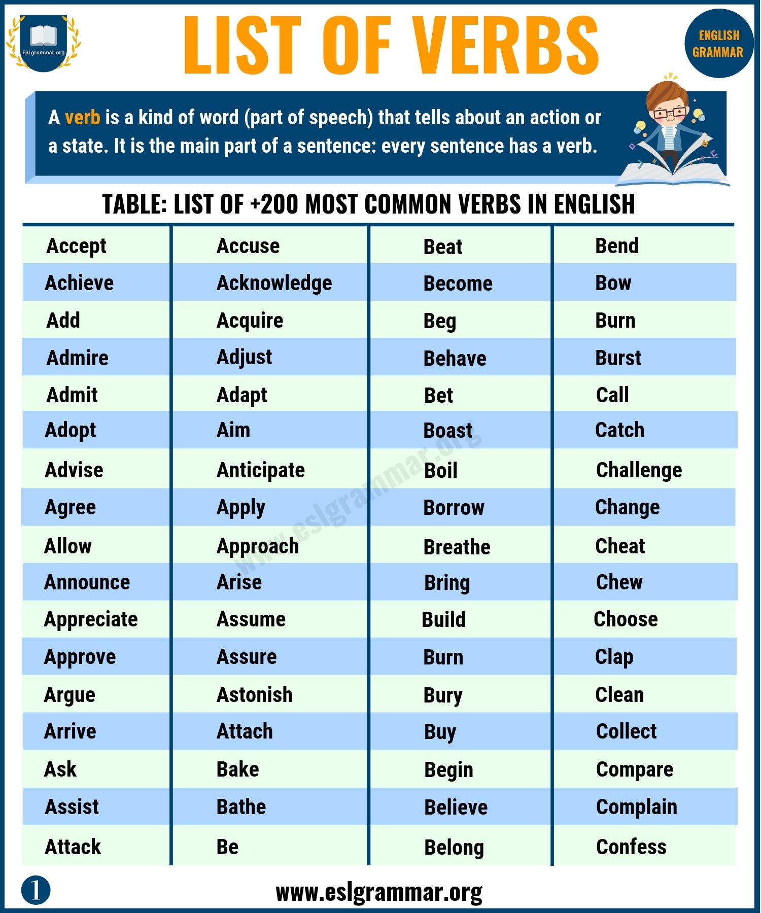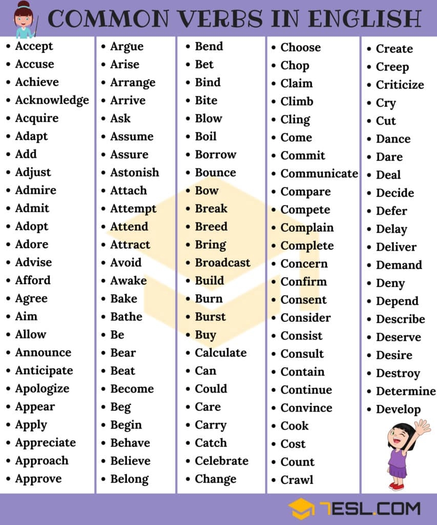 List Of Verbs 2500 English Verbs For ESL Learners ESL Grammar