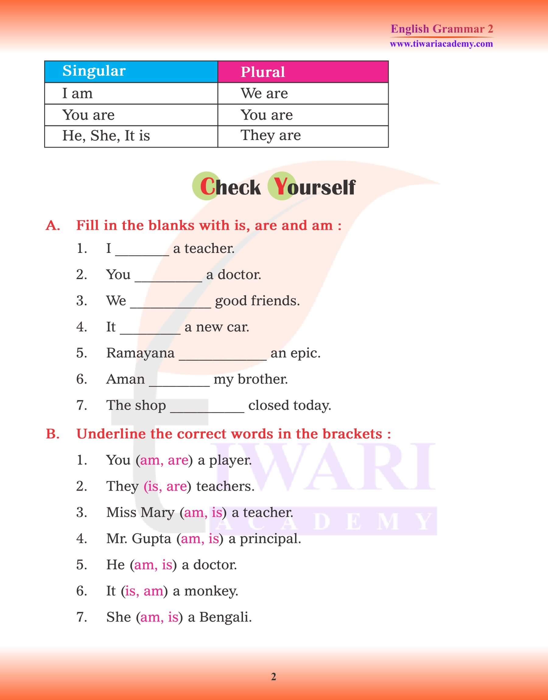 Class 2 English Grammar Chapter 10 Use Of Is Am And Are In PDF File