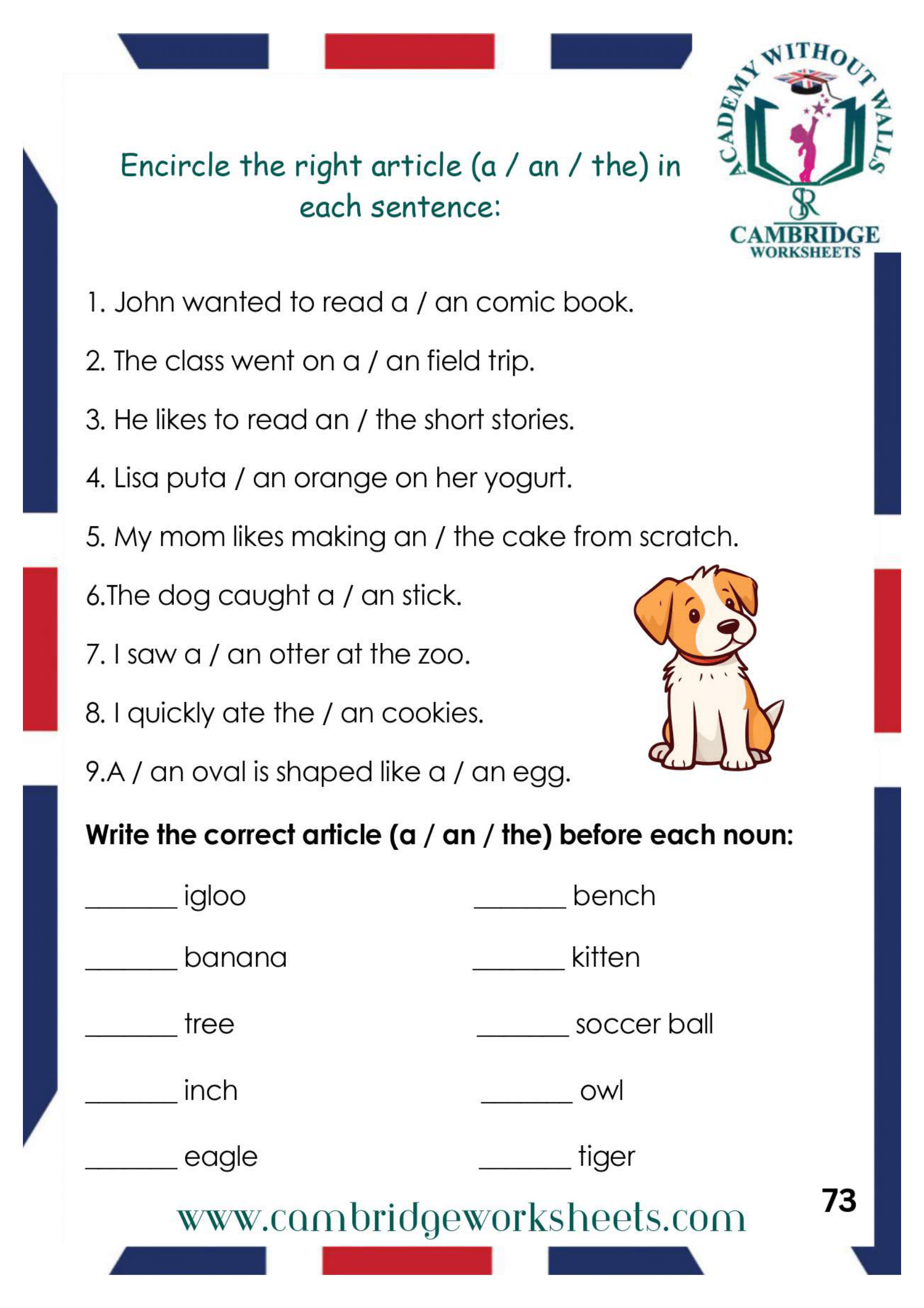 Articles A And An Grammar Worksheets For Grade 1 2 3 Made By Teachers