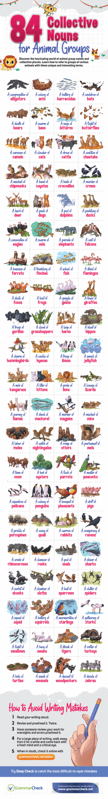 Some group nouns for animals can be quite whimsical and evoke a sense of wonder. For example, a group of flamingos is called a “flamboyance,” reflecting the vibrant colors and graceful movements of these birds. A “bloat” is the term used for hippos, while a “clowder” is the collective noun for cats.