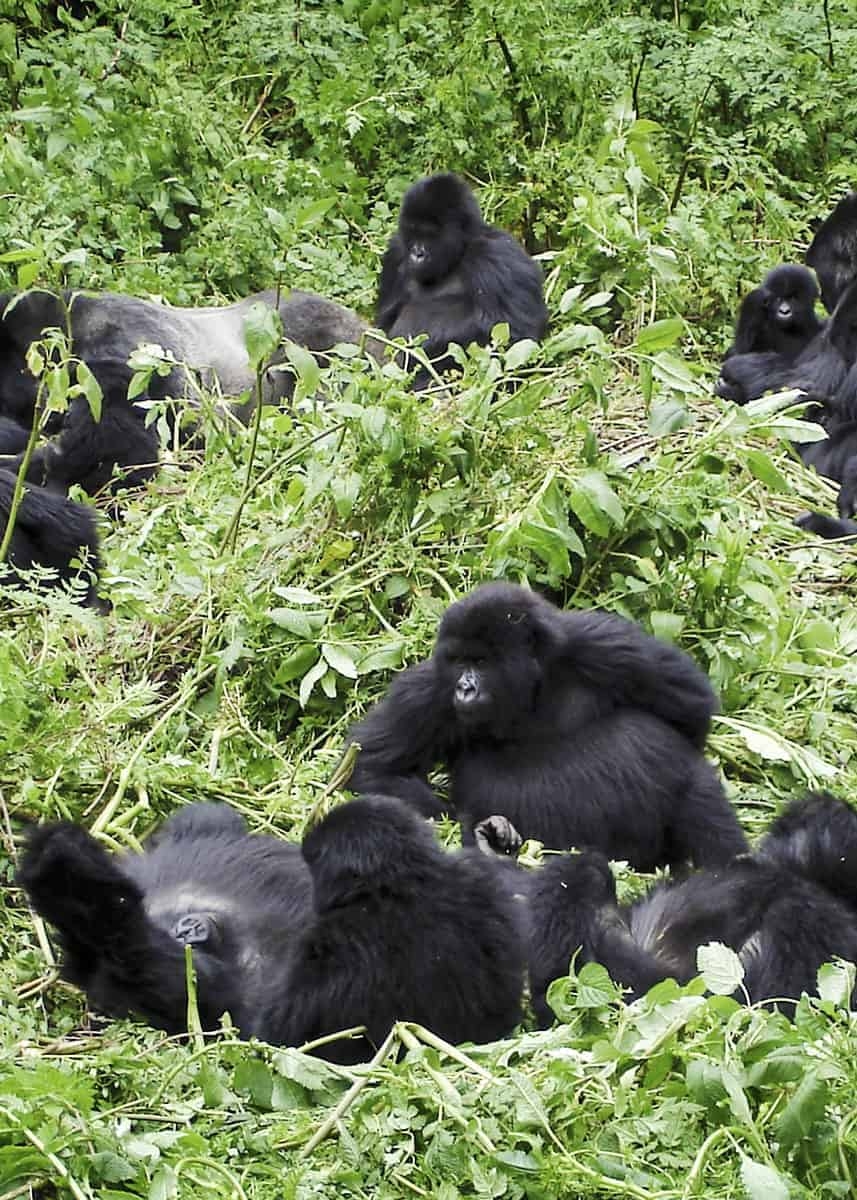 Gorillas are another group of apes that live in close-knit family groups led by a dominant silverback male. These gentle giants exhibit strong social bonds and communicate through vocalizations and body language. Gorillas are herbivores and spend most of their time foraging for food in the forests of Africa.