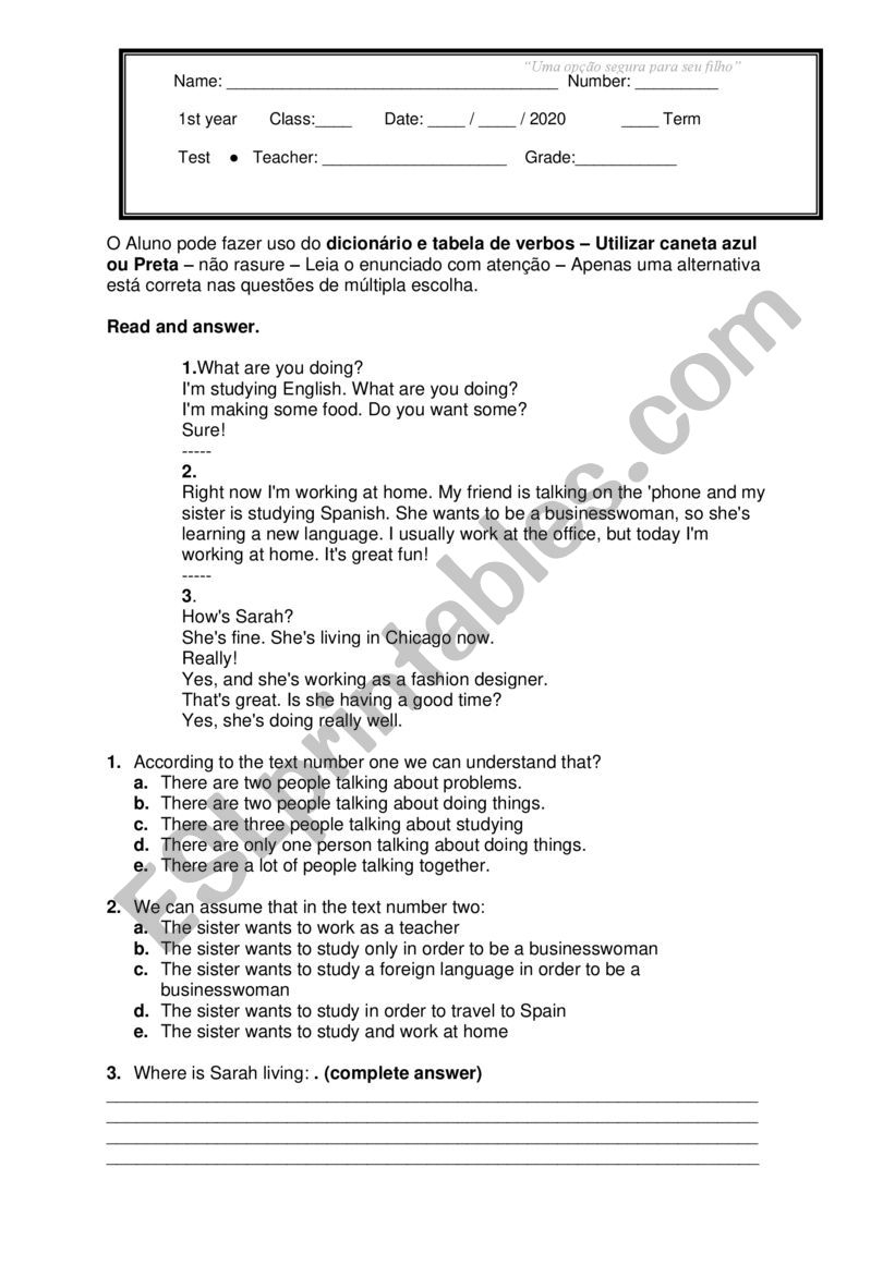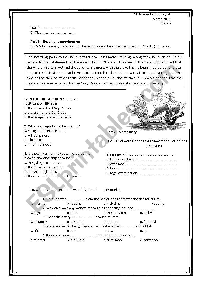 English Test High School ESL Worksheet By Ncarnevalli