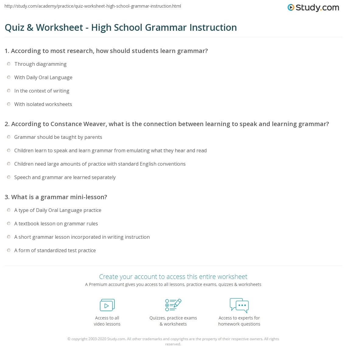 Quiz U0026 Worksheet High School Grammar Instruction Study