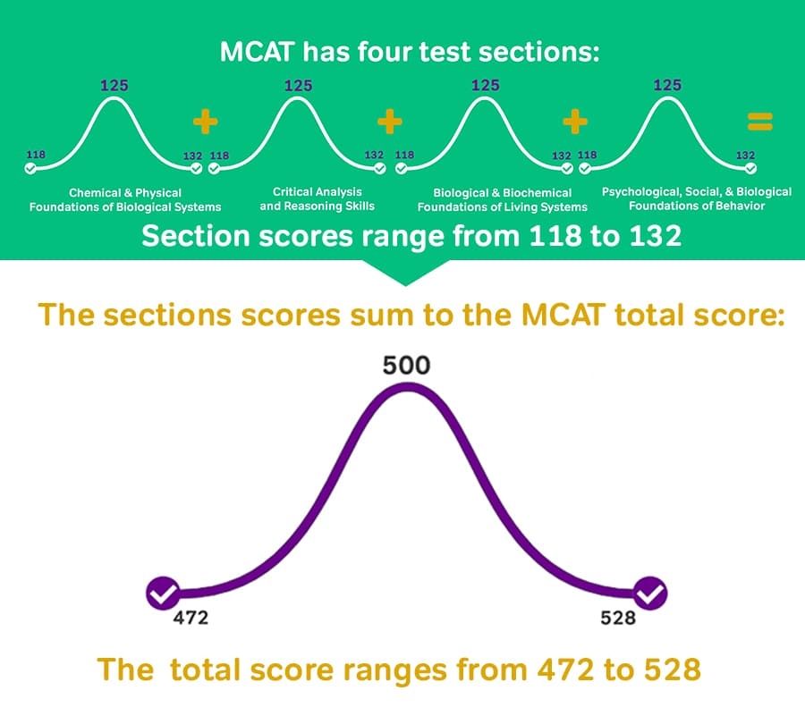 After the individual section scores are calculated, they are combined to give you a total score. The total MCAT score ranges from 472 to 528, with a midpoint of 500. This total score is what medical schools use to evaluate your performance on the exam.