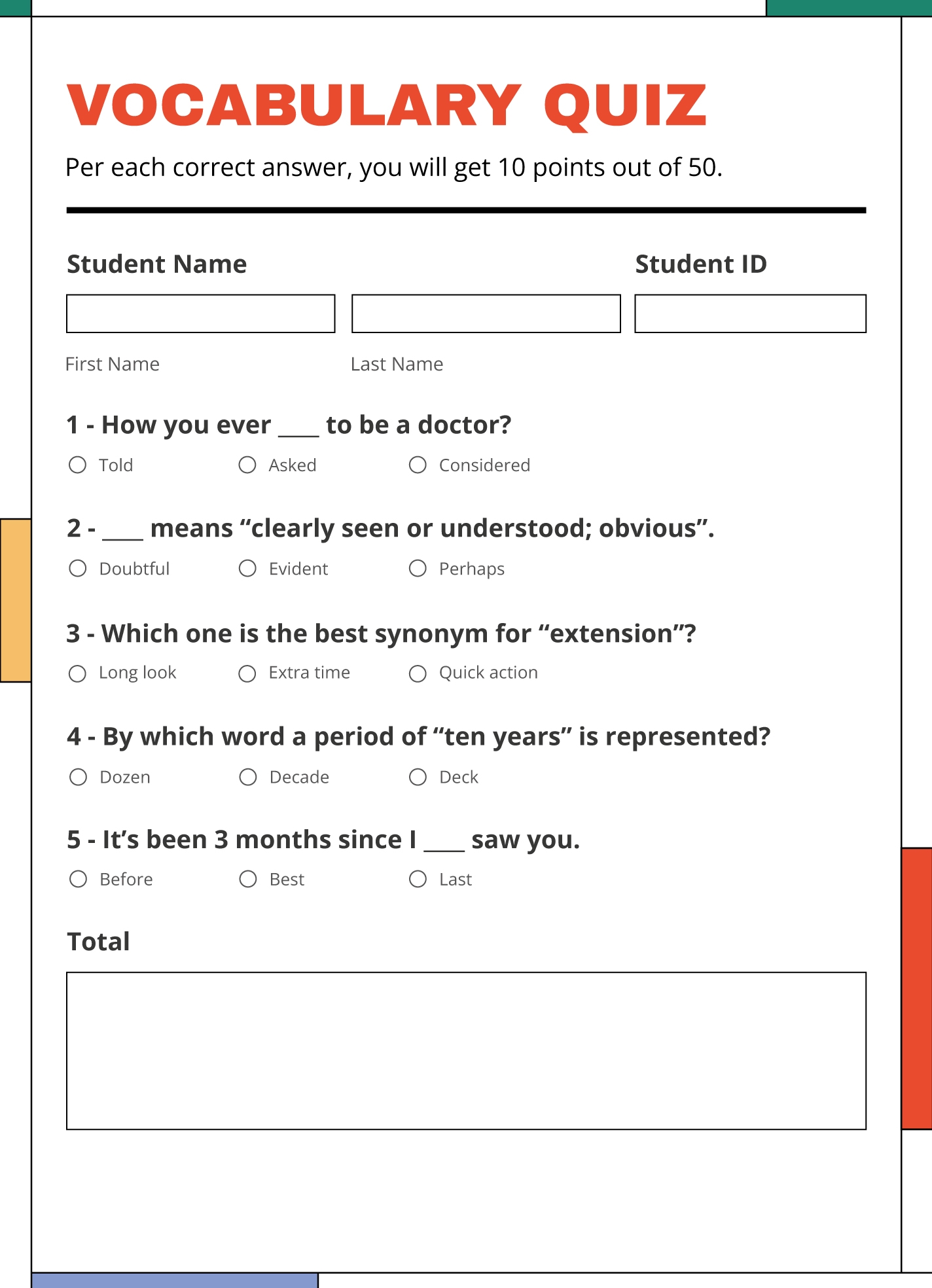 When you take a vocabulary quiz, you are not just memorizing a list of words. You are engaging with the language, learning new words in context, and sharpening your understanding of their nuances. This active learning process allows you to internalize the words and use them more effectively in your speaking and writing.