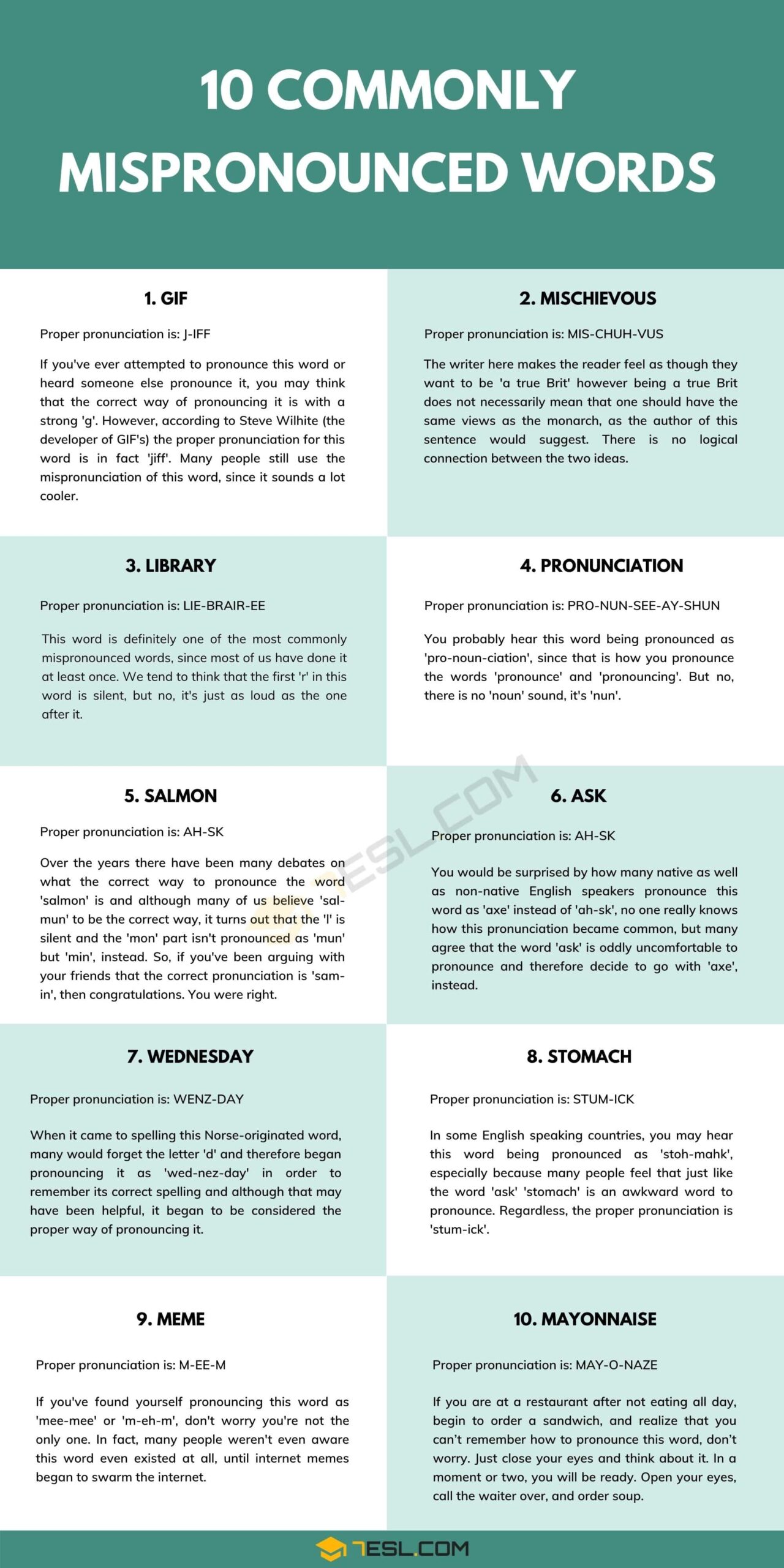 10 Most Commonly Mispronounced Words In The English Language 7ESL