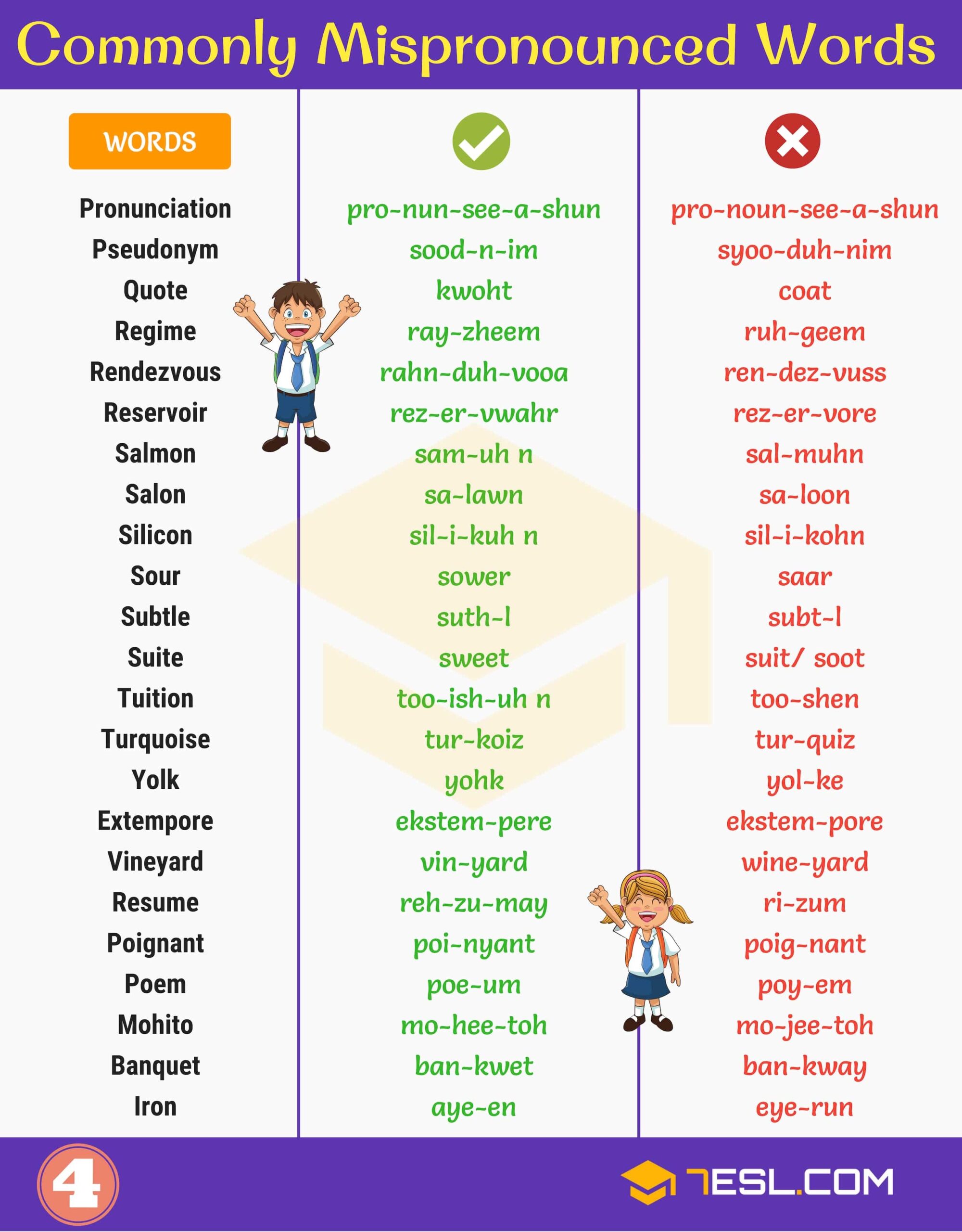 185 Commonly Mispronounced Words In The English Language 7ESL
