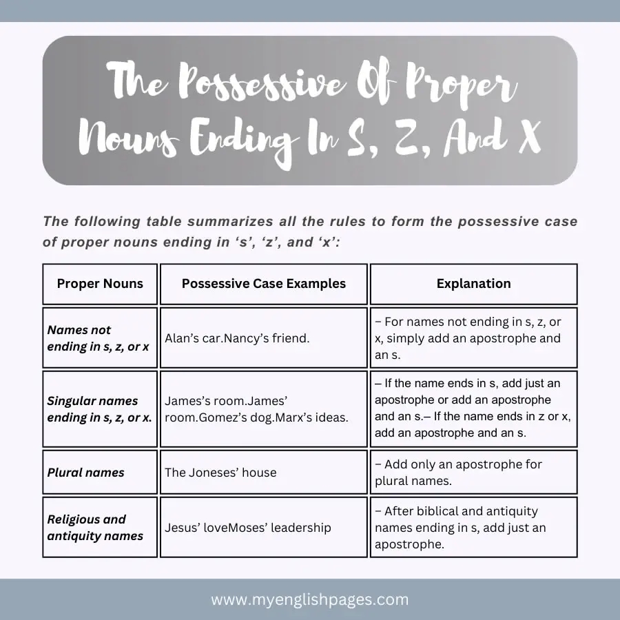 Names that end in S can belong to both singular and plural nouns, so it’s important to know the correct way to indicate possession. Whether it’s a person’s name, a place, or a thing, following the rules of possession will ensure that your writing is clear and grammatically correct.