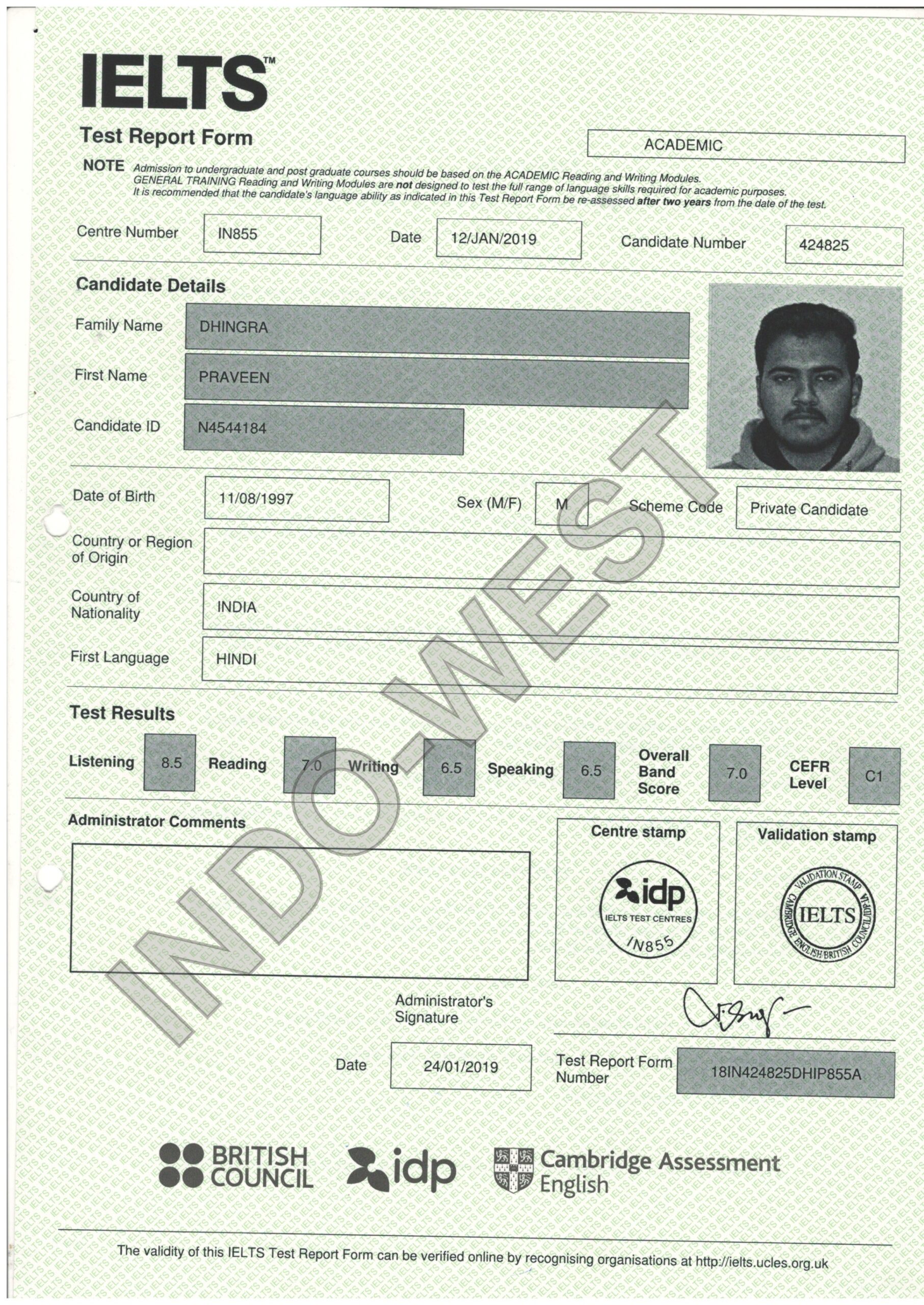 IELTS Certificate Example