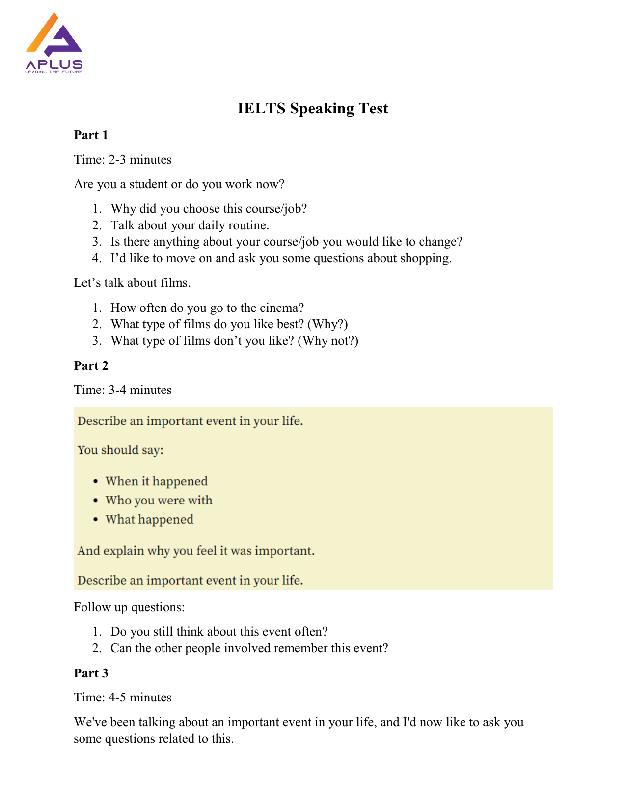IELTS Full Speaking Test Questions