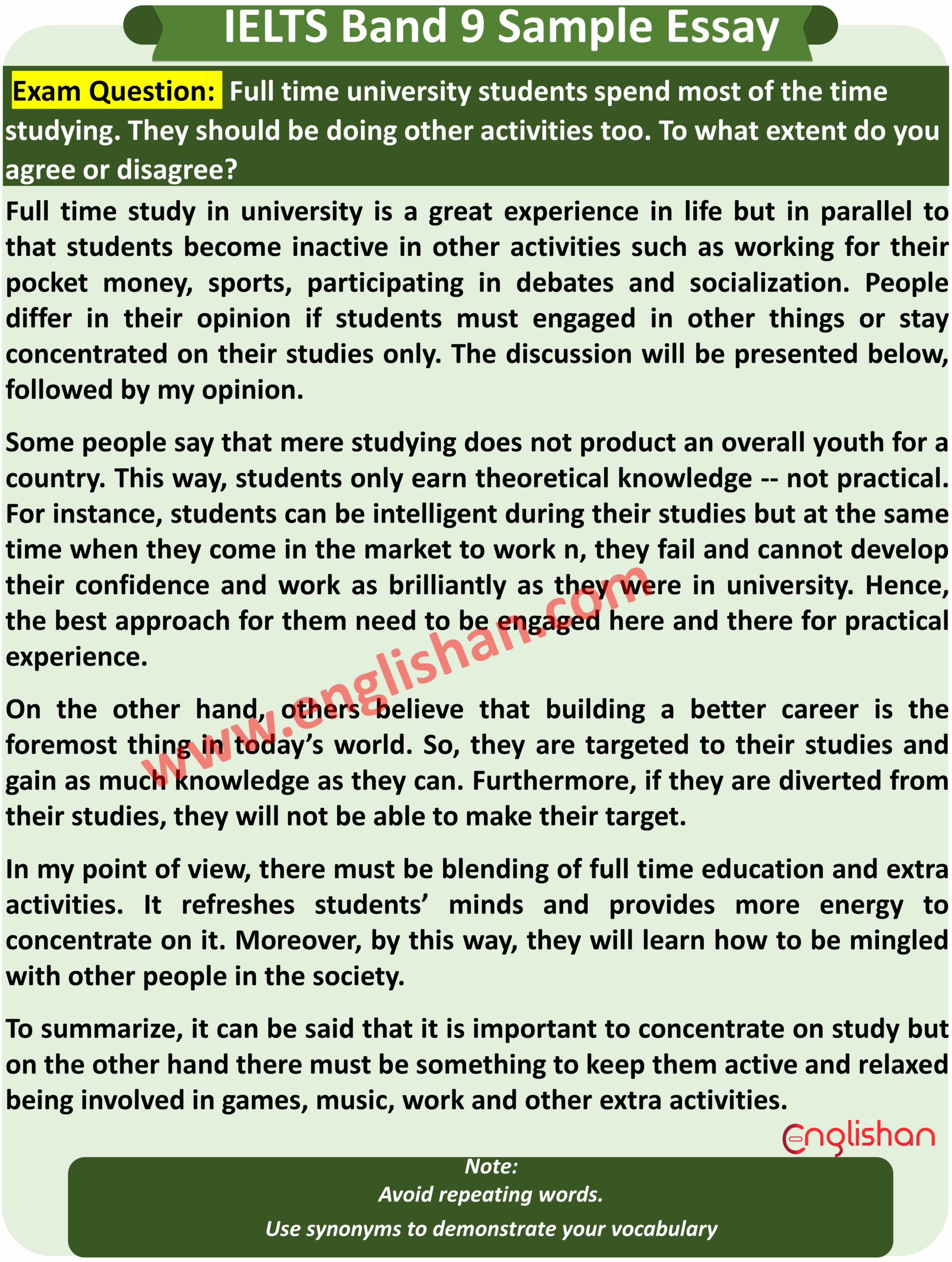 In conclusion, mastering the art of essay writing is essential for success in the IELTS exam. By studying examples of well-written essays and practicing regularly, you can improve your writing skills and confidently tackle any writing task that comes your way during the exam. Good luck!