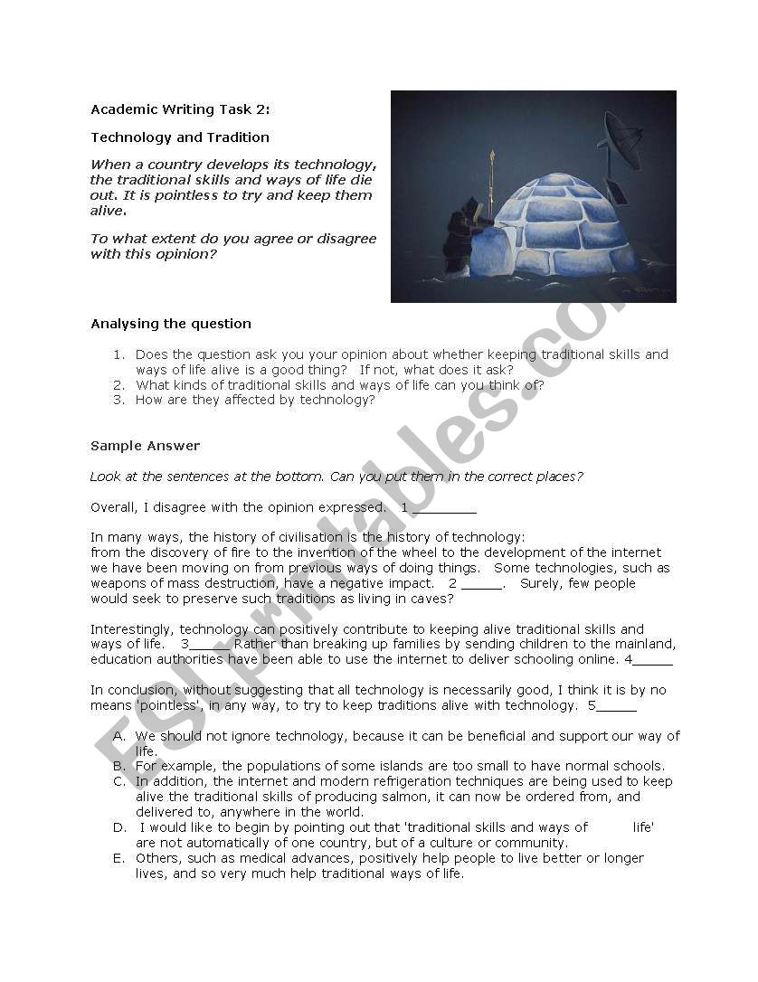 IELTS Academic Writing Task 2 Technology And Tradition ESL Worksheet By Piet88