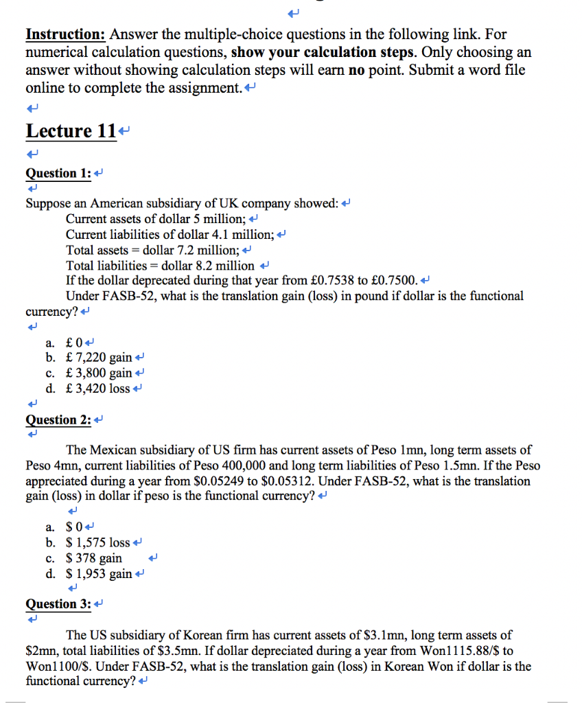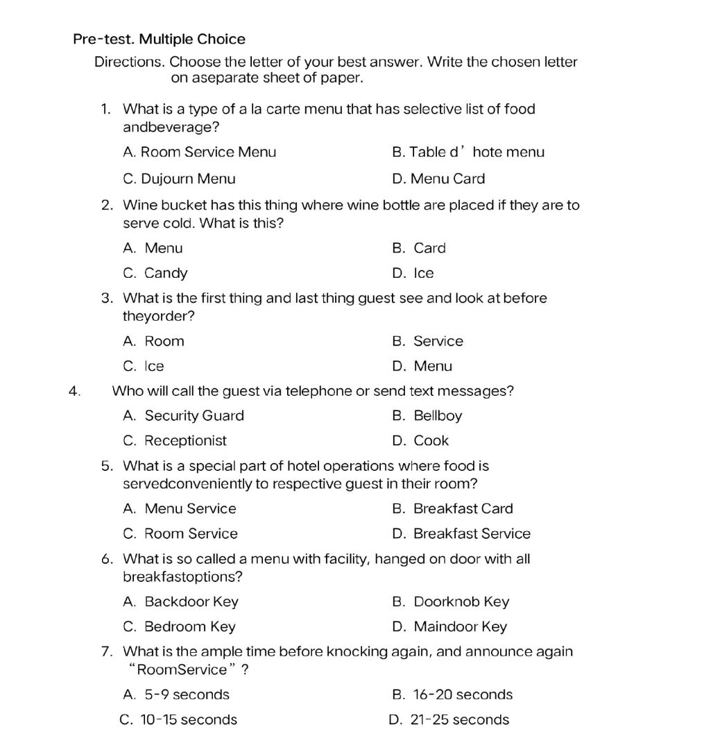 Instruction For Multiple Choice Test