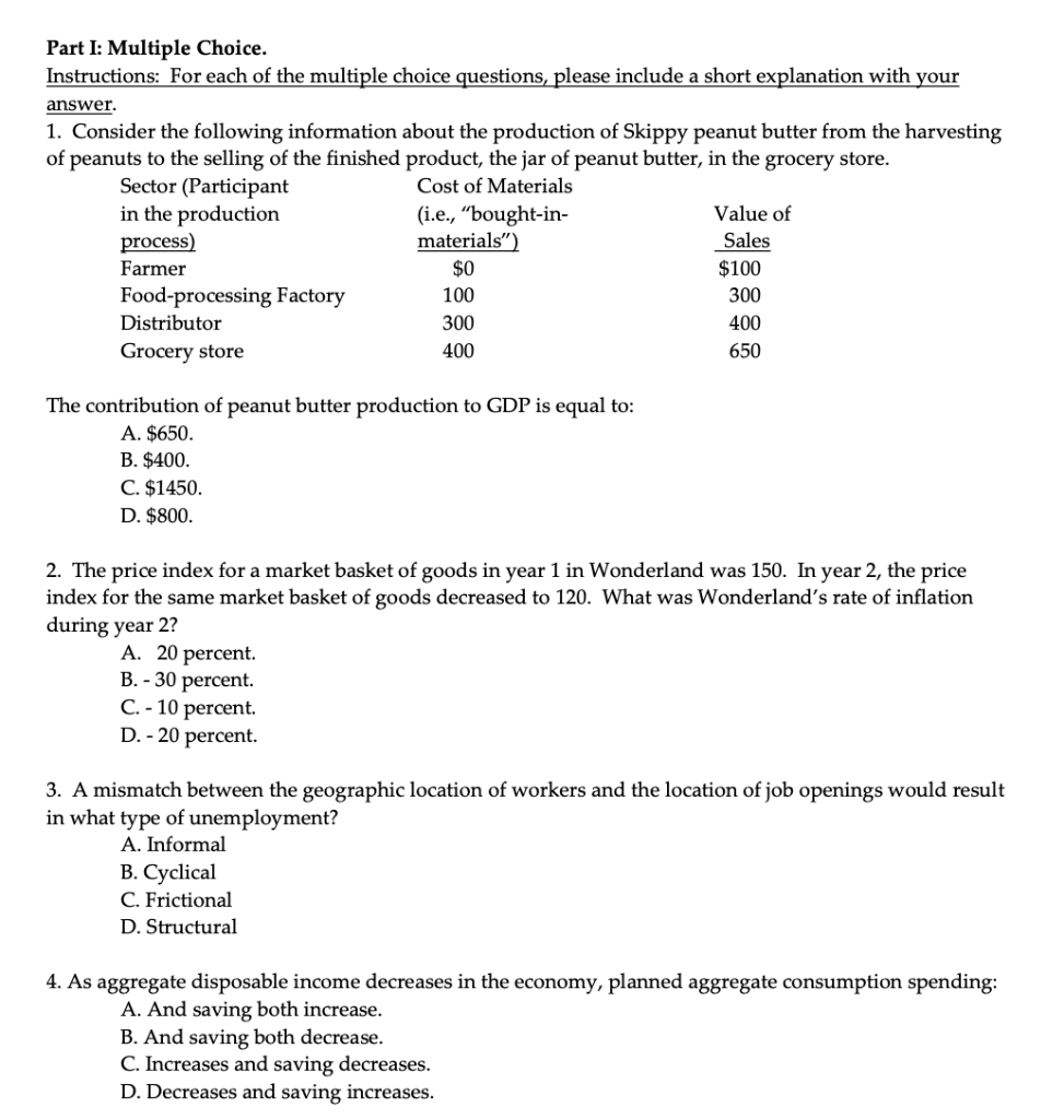 Solved Part I Multiple Choice Instructions For Each Of Chegg