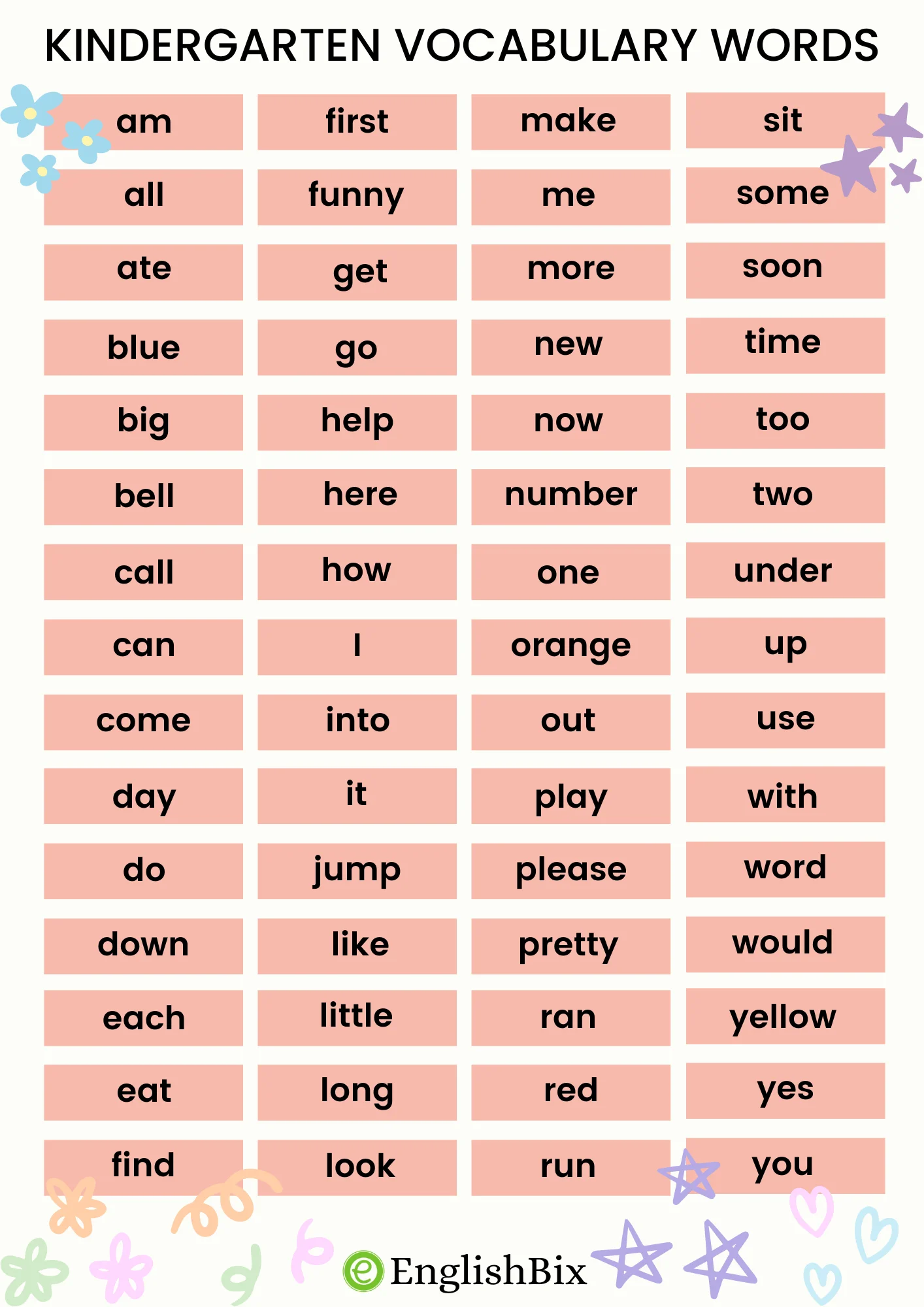 Kindergarten Vocabulary Words with Pictures