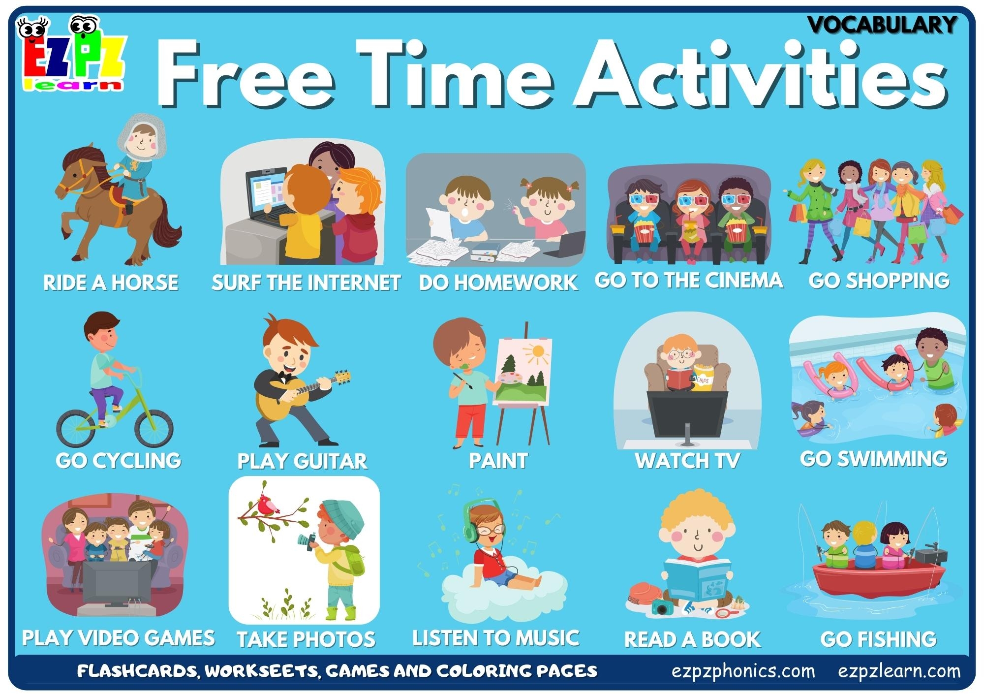 Free Time Activities Vocabulary Picture Dictionary Join Now For Free Flashcards Worksheets And Coloring Pages Ezpzlearn
