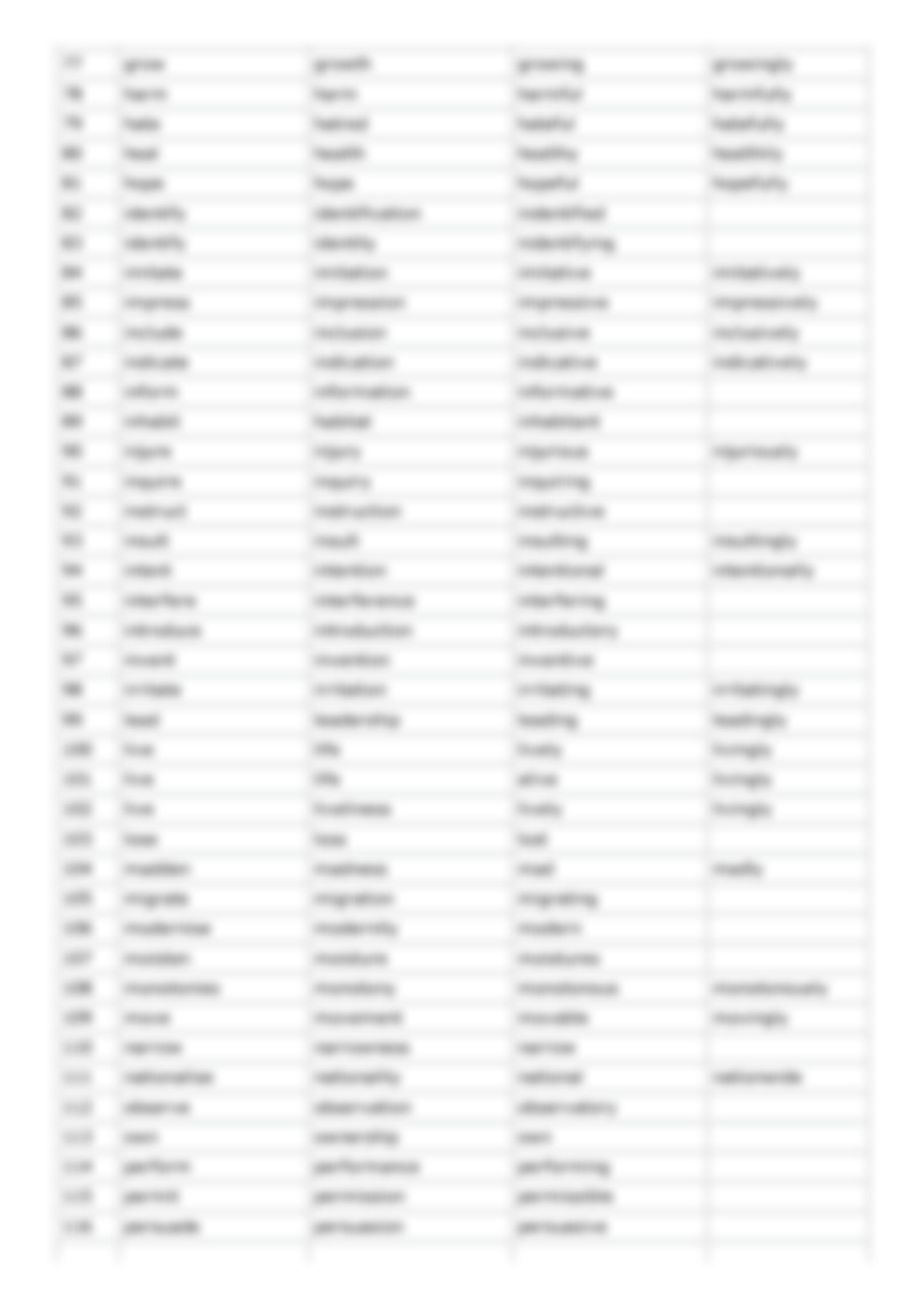 Adverbs: quickly, carefully, beautifully, easily, quietly