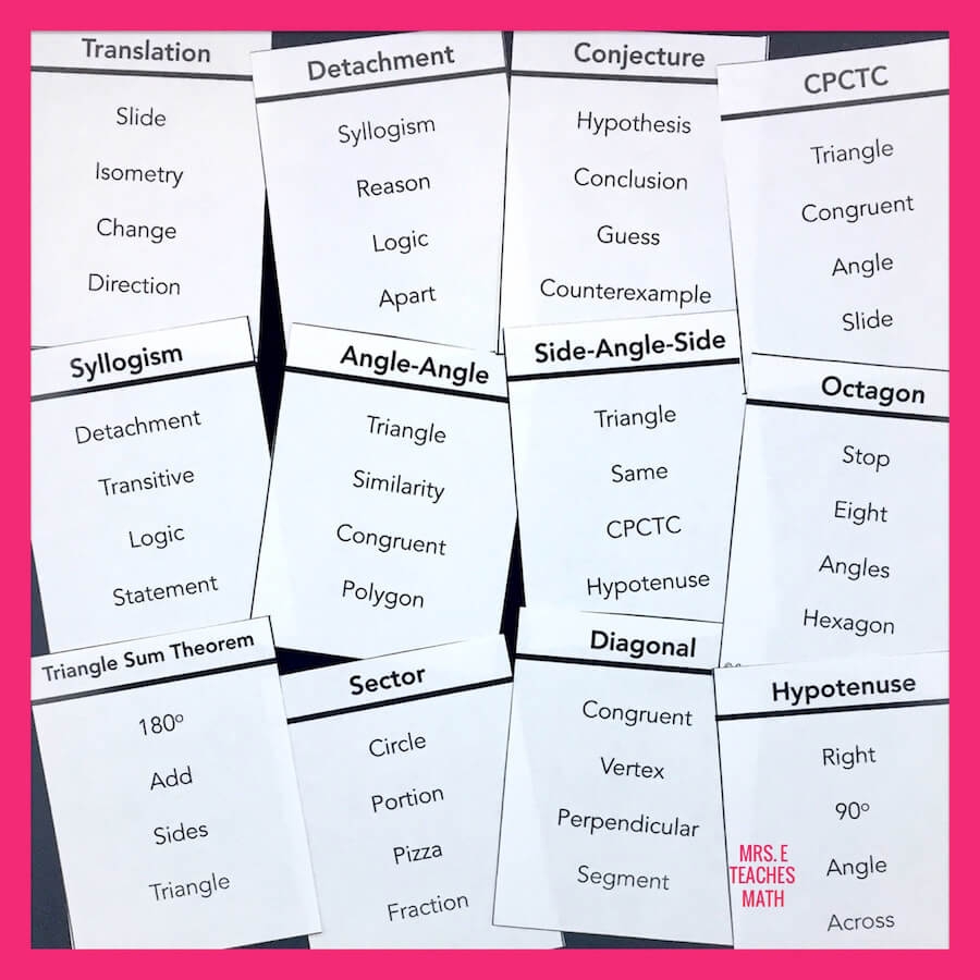 list of math vocabulary words